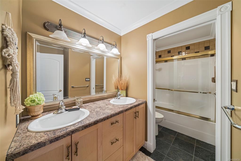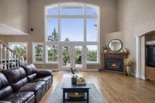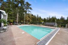 Nestled within trees, vegetation & gardens on 3.13 acres & on MUNICIPAL WATER, this breathtaking property is a rare oasis! 18’ vaulted ceiling & perfectly captured ocean/mountain views in sun-soaked south facing great room captivate upon entry. Brilliant floor plan guides you through kitchen, dining room, breakfast nook, office, laundry room & primary with 5 pc ensuite & access to decks w hot tub. Upstairs a family room, 3 add'l beds & 5 pc bathroom await. A massive 60’x27’ 3+ car garage w bathroom provides space for vehicles & projects. Above, a 1bed suite w own access & lift makes an accessible rental unit & no-step studio suite below main residence is perfect for accommodating visitors & family. Plenty of space for campers/RVs/boats/quads & surrounded by trail systems & access points - your summers will never be the same again! Spend it immersed in nature, in your in ground pool or under the stars in your hot tub, the memories you’ll make will be looked back on for years to come.