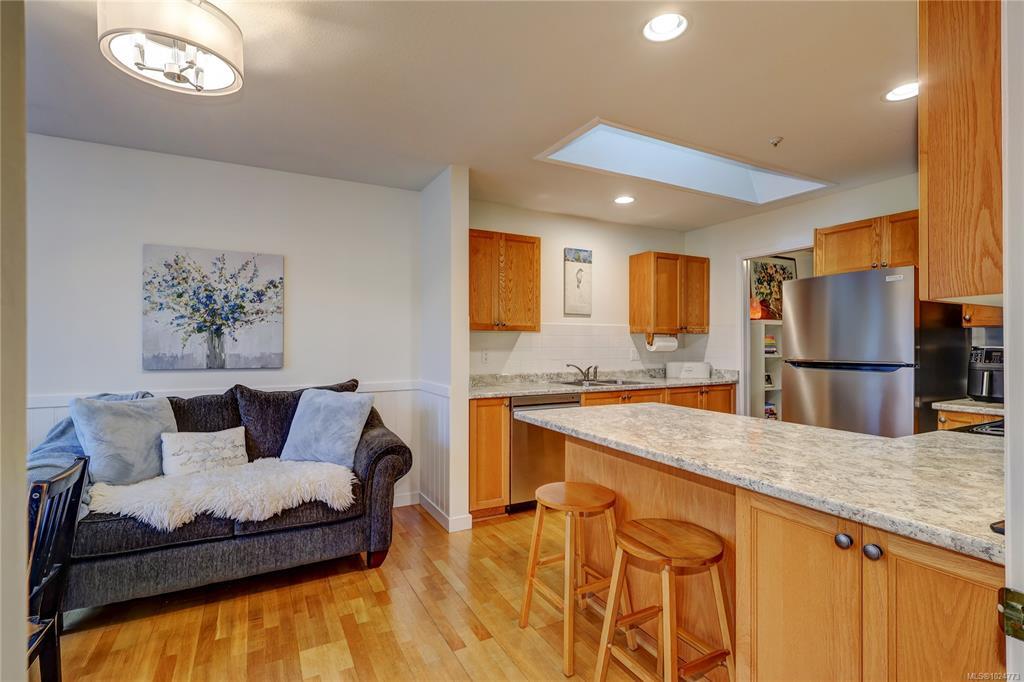 Enjoy easy, connected living at Waterton Place, a well-regarded community in the heart of North Nanaimo. Designed for those looking to simplify without sacrificing comfort, this bright 2-bedroom, 2-bath home offers a thoughtful one-level layout with seamless indoor-outdoor flow to a private patio—ideal for morning coffee or quiet afternoons. Inside, you’ll find fresh paint, all new modern light fixtures professionally installed throughout, a new gas fireplace and surround, and an updated roof with skylights that enhance natural light. The spacious living and dining areas feel open and welcoming, while the kitchen offers generous storage and workspace. The primary bedroom includes a full ensuite, and a second bedroom provides flexibility for guests or hobbies. In-suite laundry, updated appliances, a single garage, and an additional parking space add everyday convenience. Quiet yet just steps to shopping, dining, transit, and amenities, this is relaxed North Nanaimo living at its best.