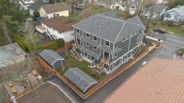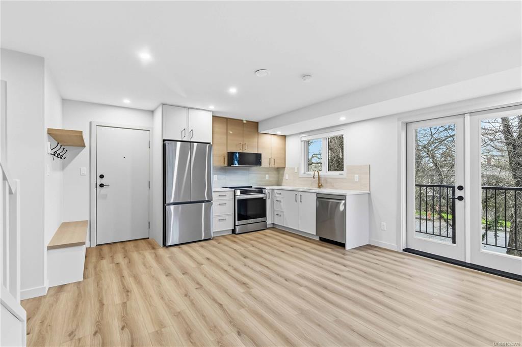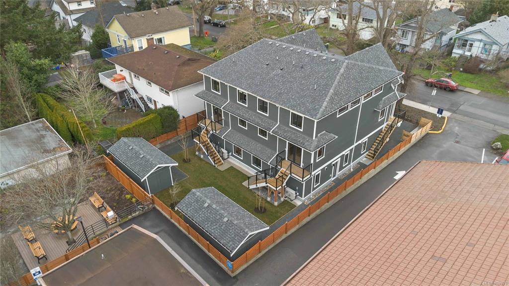#4 at 1789 Emerson – a thoughtfully designed, open-concept layout with 2 bed & 1.5 bath. Located on sleepy Emerson St, this home provides a serene setting within easy reach of urban amenities. The spacious kitchen, dining, and living areas flow seamlessly, creating an inviting space for both daily life and entertaining. Upstairs, you will find a work from home space and 2 bedrooms with a large main bathroom. Modern luxuries include efficient heat pumps for year-round comfort and heated bathroom floors for a touch of everyday indulgence. With its own secure electric bike storage unit at the rear of the property, and set in a walkable, well-connected neighbourhood, this residence offers the perfect blend of convenience, function, and sophistication. Move in ready. Price + GST