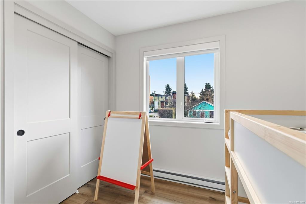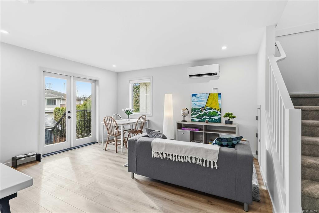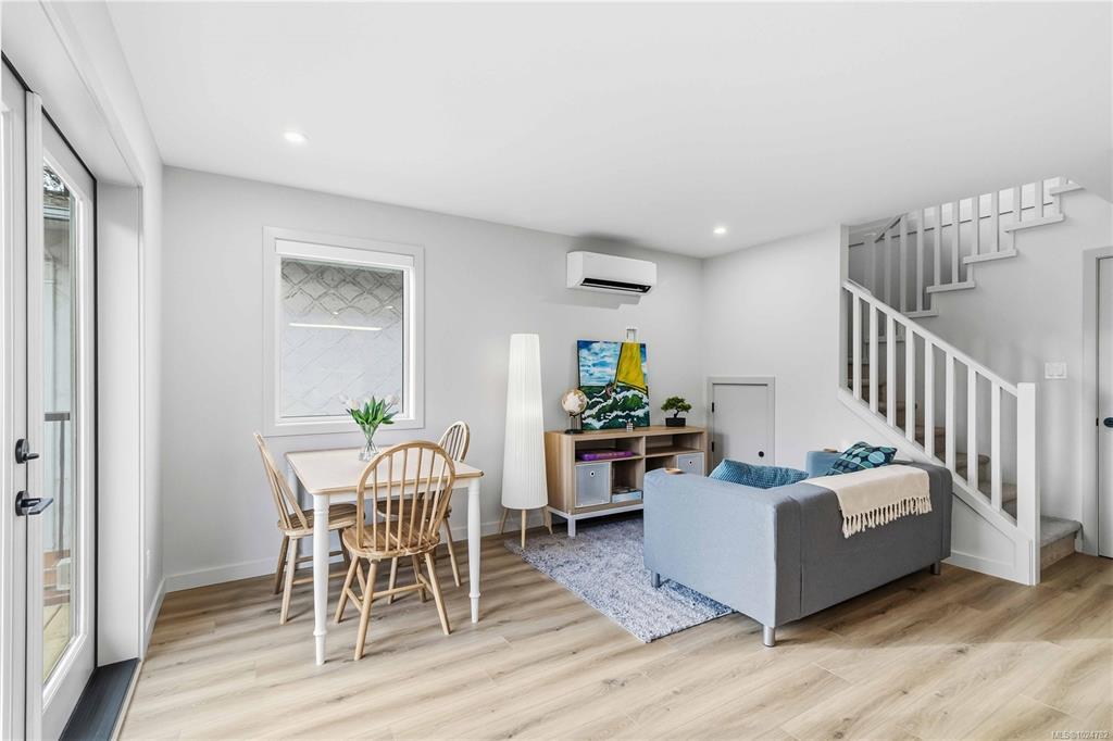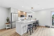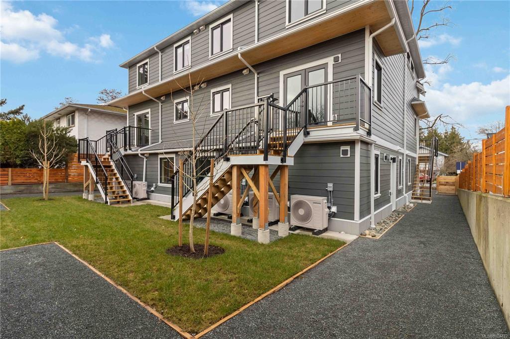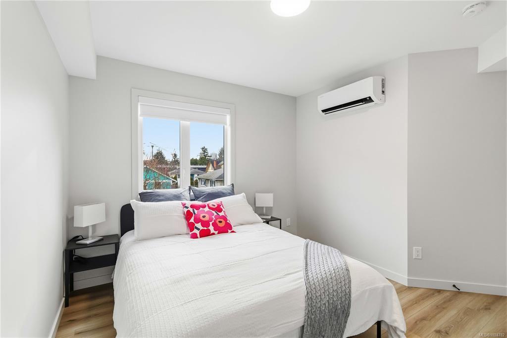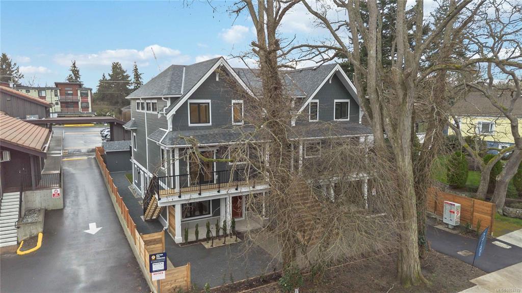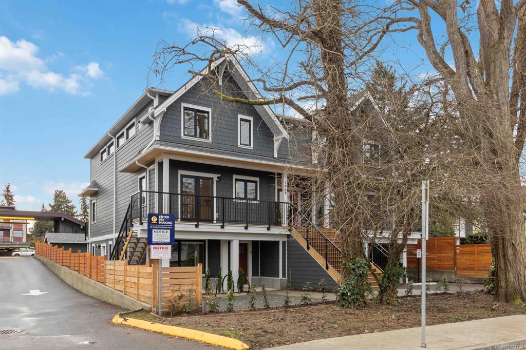 Introducing #6 at 1789 Emerson – our largest 2-bed layout, south-facing townhome filled with natural light, offering an elevated blend of comfort and style. Located on quiet Emerson St, it’s a peaceful retreat just steps from parks, shops, and cafés. The main level features an open-concept kitchen with island seating, flowing seamlessly into the living area, plus a stylish powder room for guests. Upstairs are two bedrooms, including a spacious primary with walk-in closet, a sleek main bath, and a versatile flex space ideal for a home office or creative nook. Enjoy year-round comfort with efficient heat pumps and the luxury of heated bathroom floors. This home also includes its own secure electric bike storage unit, conveniently located at the rear of the property. With curated design, contemporary finishes, and a walkable location in one of Victoria’s most connected neighbourhoods, this is modern, car-optional living at its best. Completing Fall 2025. Price + GST