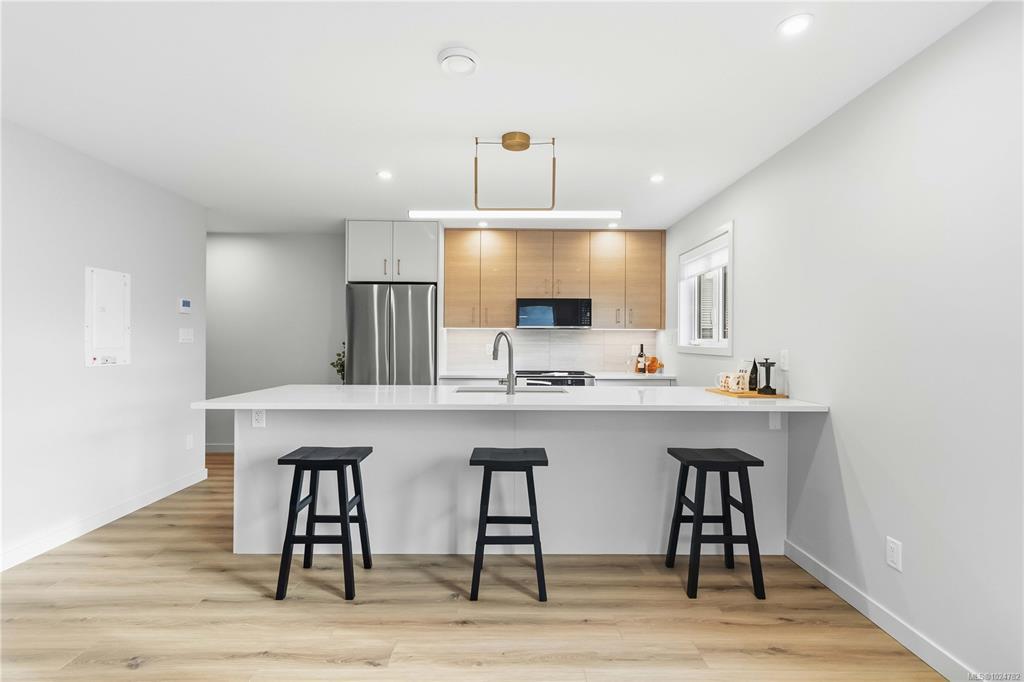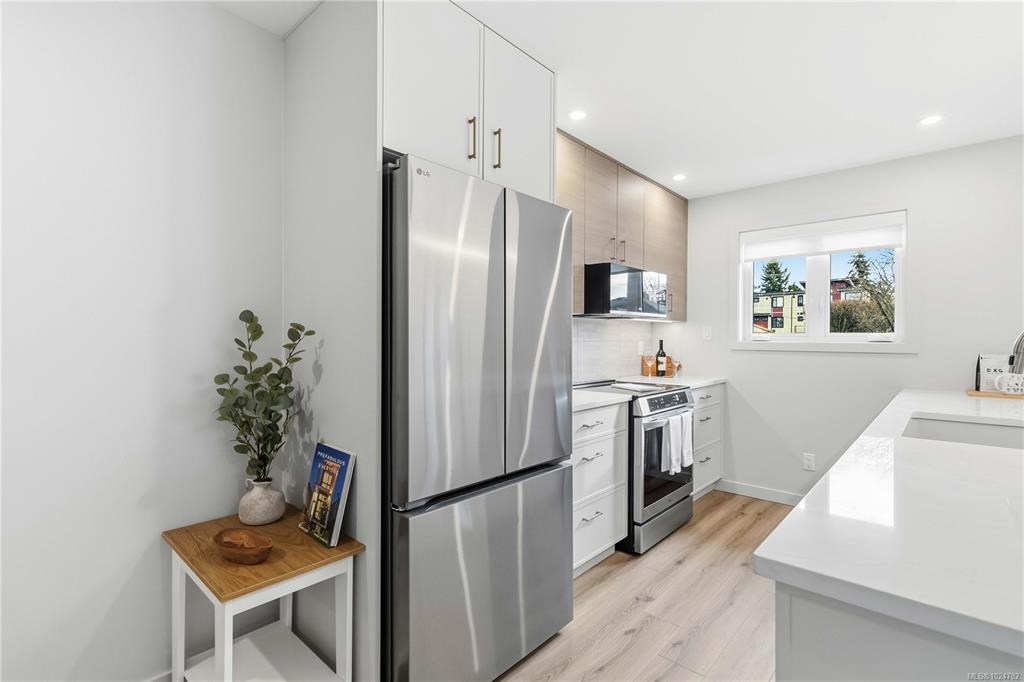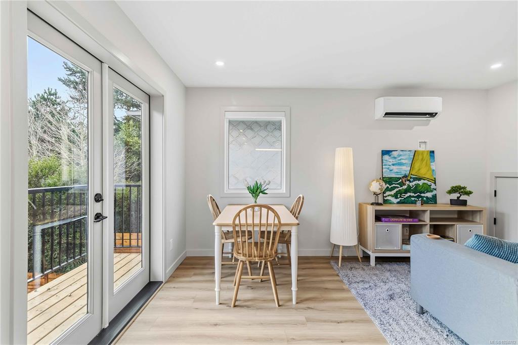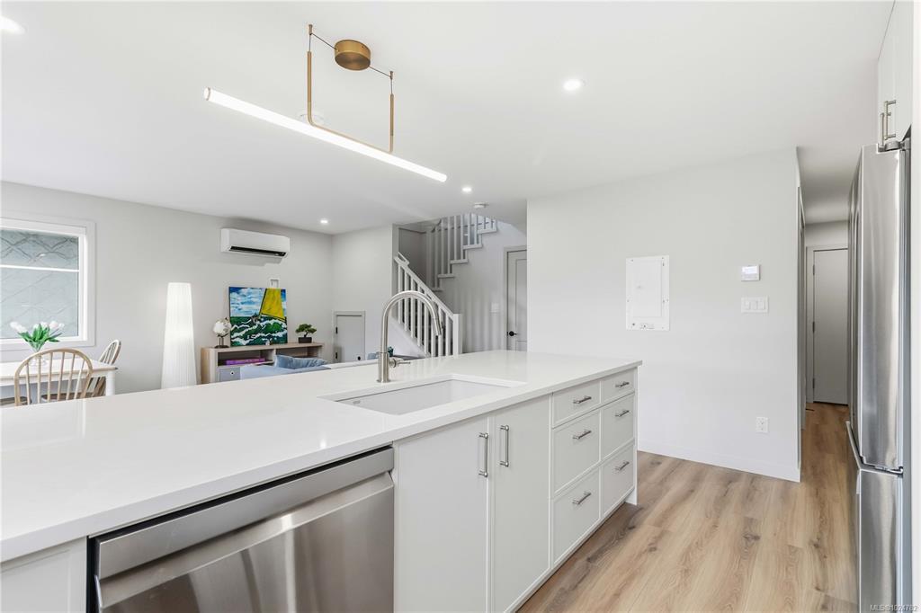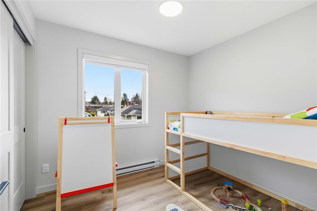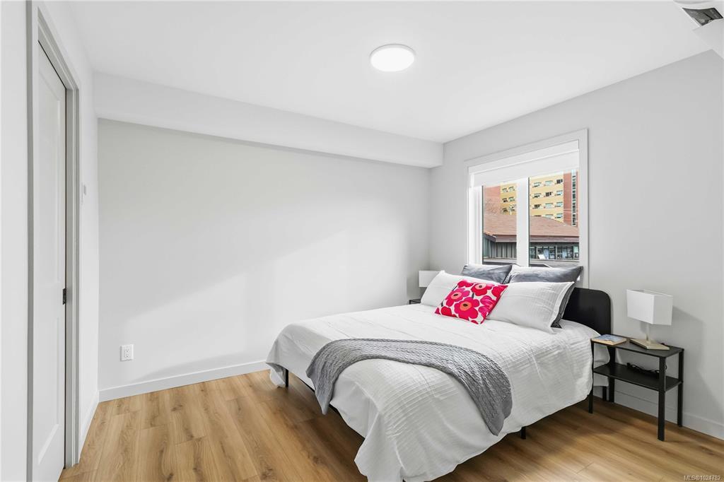Introducing #6 at 1789 Emerson – our largest 2-bed layout, south-facing townhome filled with natural light, offering an elevated blend of comfort and style. Located on quiet Emerson St, it’s a peaceful retreat just steps from parks, shops, and cafés. The main level features an open-concept kitchen with island seating, flowing seamlessly into the living area, plus a stylish powder room for guests. Upstairs are two bedrooms, including a spacious primary with walk-in closet, a sleek main bath, and a versatile flex space ideal for a home office or creative nook. Enjoy year-round comfort with efficient heat pumps and the luxury of heated bathroom floors. This home also includes its own secure electric bike storage unit, conveniently located at the rear of the property. With curated design, contemporary finishes, and a walkable location in one of Victoria’s most connected neighbourhoods, this is modern, car-optional living at its best. Completing Fall 2025. Price + GST
