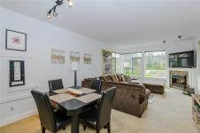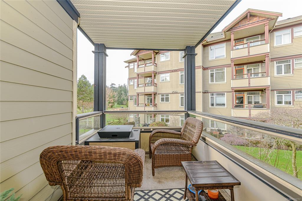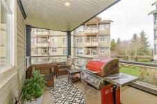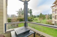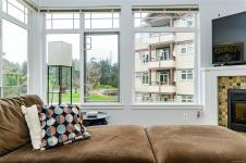 Open House Sat Feb 7 1-3. Serene Golf Course Living at Its Finest Experience the perfect blend of tranquility and space in this expansive 1,200 sq. ft. corner-unit sanctuary. Overlooking the lush fairways of Gorge Vale Golf Course, this 2-bedroom plus den home is bathed in natural light. The open-concept kitchen and living area—anchored by a cozy electric fireplace—transition seamlessly to a massive 100+ sq. ft. covered deck, ideal for morning coffee or sunset refreshments.