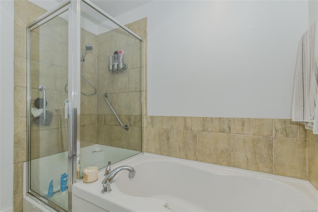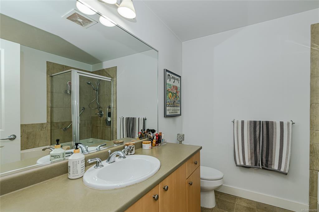 The primary suite serves as a true retreat, featuring a walk-through closet and a spa-like 4-piece ensuite with a deep soaker tub and separate shower. Rare perks include two secure underground parking stalls, a guest suite for visitors, and dedicated storage for your kayak and bike. Whether you're walking the E&N Trail or heading downtown, this pet-friendly gem offers an unmatched lifestyle.