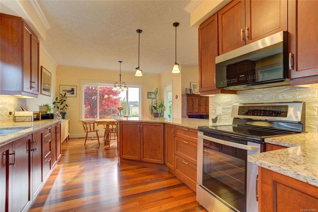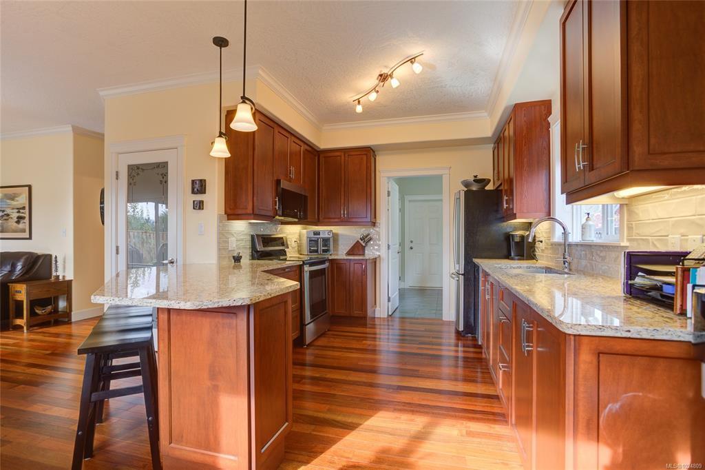 This stunning Cowichan Bay Heights home offers exceptional comfort, style & functionality with a thoughtful layout ideal for modern living. Built in 2009 & beautifully maintained, this open-concept residence offers over 2,000 sq ft of living space with 3 bdrms, 3 baths, a family rm & living rm featuring a cozy natural gas fireplace. The main floor features hardwood. The gourmet kitchen is a standout, showcasing cherry cabinetry, a pantry, peninsula island, ample counter space and flows through to the dining & living areas—perfect for entertaining. The private, nicely landscaped & fenced backyard backs onto a farmer’s field with no neighbors behind, offering peaceful views & excellent birdwatching. Updates include new kitchen counters, microwave, backsplash, covered rear deck, side fence, lean-to, exterior paint, slate accents on pillars, garage & front porch, new hwt, heat pump upgrade & blinds. An unbeatable location. just minutes from the waterfront, marina, shops, and wineries.