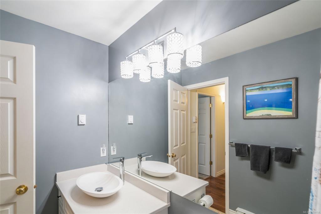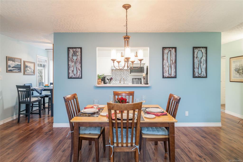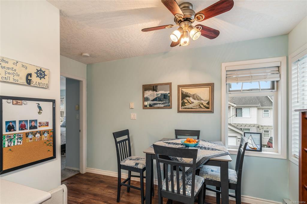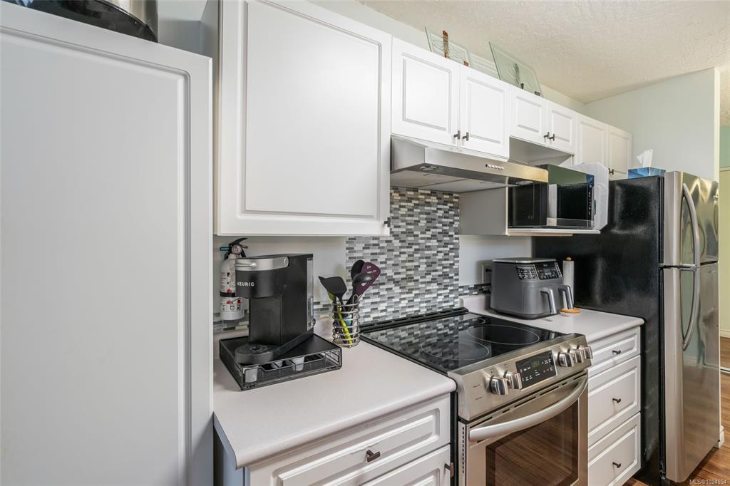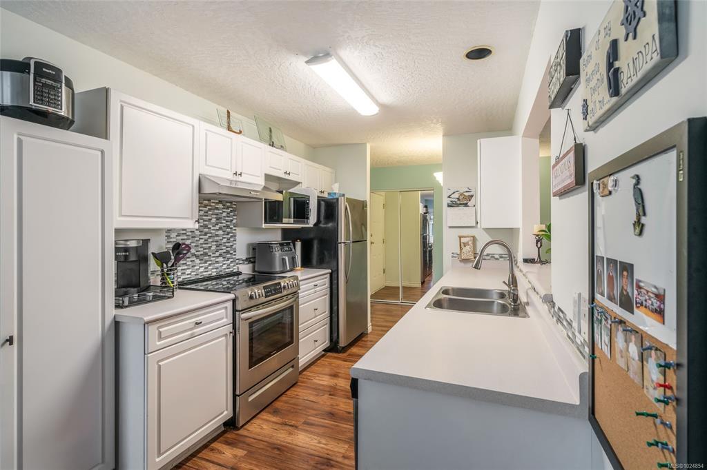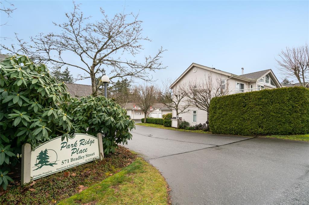 Uptown & Popular 3 Bedroom 2 Bath townhome at Park Ridge Place! Located in great location close to Departure Bay Ferry Terminal, Bowen Park, Downtown & Hullo Ferries, this updated & move-in ready townhouse must be seen. Desired upper level unit has engineed hardwood floors throughout main rooms & tile in bathrooms, The suite is is bright & open with eleven ft vaulted ceilings in the living room & a stylish gas fireplace. Large galley kitchen with pass through open to dining room. Newer appliances, new hood fan, refurbished cabinets with new hardware & breakfast nook with ceiling fan. Both bathrooms have been updated & have tubs with showers. Updated lighting fixtures, new gas Hot water tank(2024). Spacious sundeck for summer enjoyment & pets allowed. room for 2 vehicles with a single garage with electric opener & an open spot. Well managed & maintained strata.