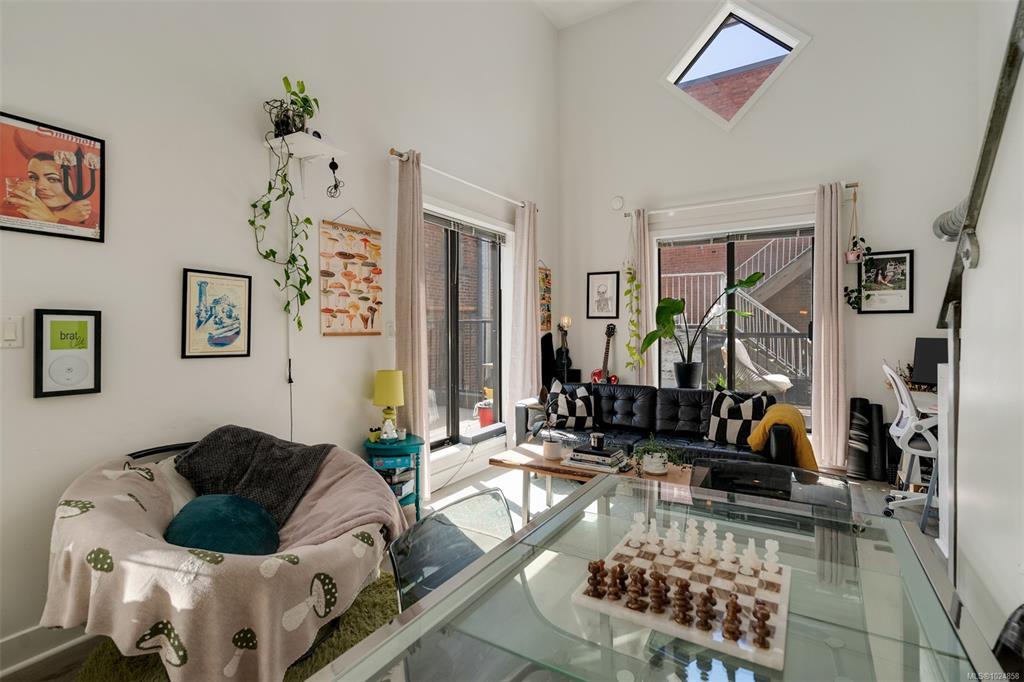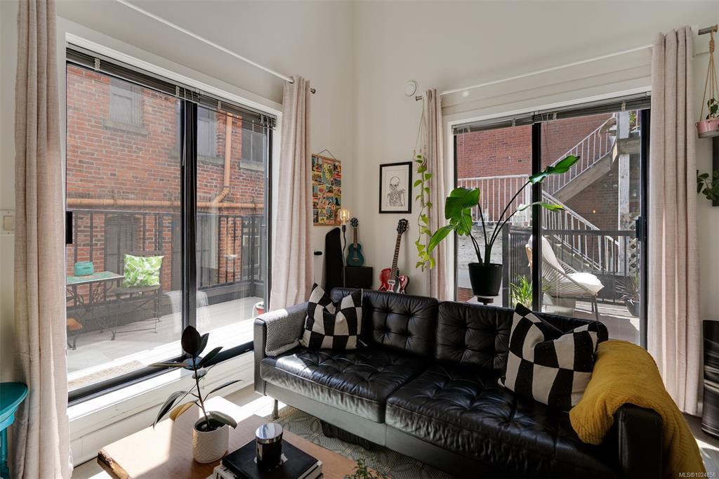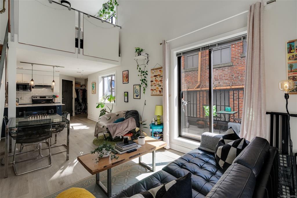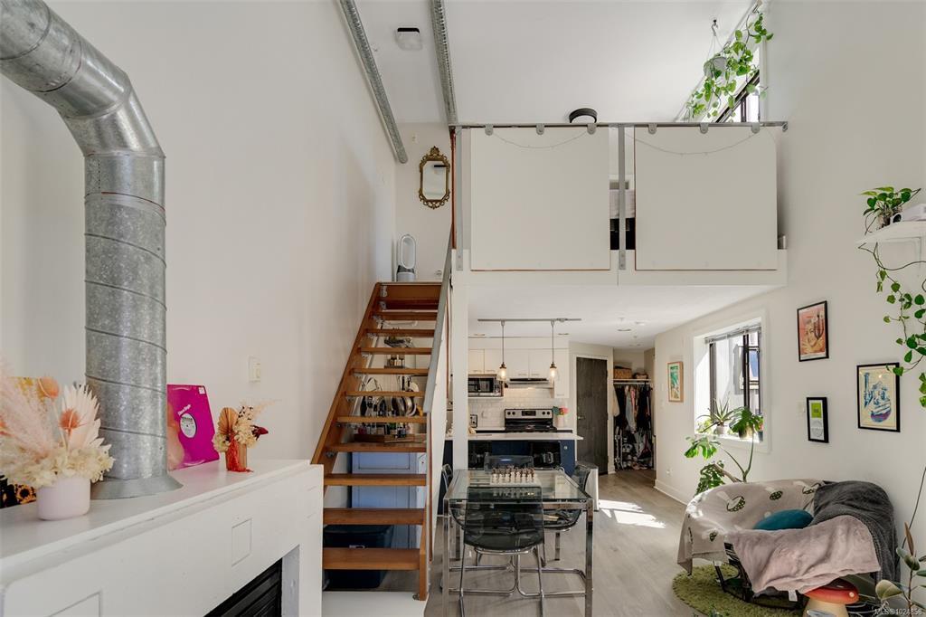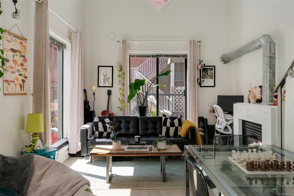 Stylish and unique, this two-level loft at Chatham Studio Lofts offers downtown living at its finest. Featuring soaring 16-foot ceilings, TWO balconies, and a bright corner layout with south-facing exposure, this unit is filled with natural light and character. The open-concept design includes a gas fireplace, stainless steel appliances, quartz countertops, and a loft bedroom with a large walk-in closet. In-suite laundry, secure underground parking (leased), and a storage locker are all included. There is a stunning rooftop patio with 360° views of the city and the ocean. Just steps from restaurants, cafés, breweries, shops, and the Inner Harbour. This is true urban living in one of the city’s most vibrant areas.
