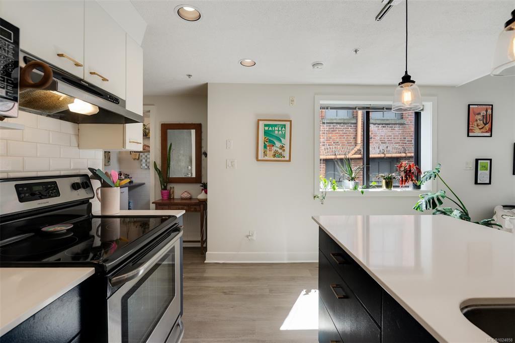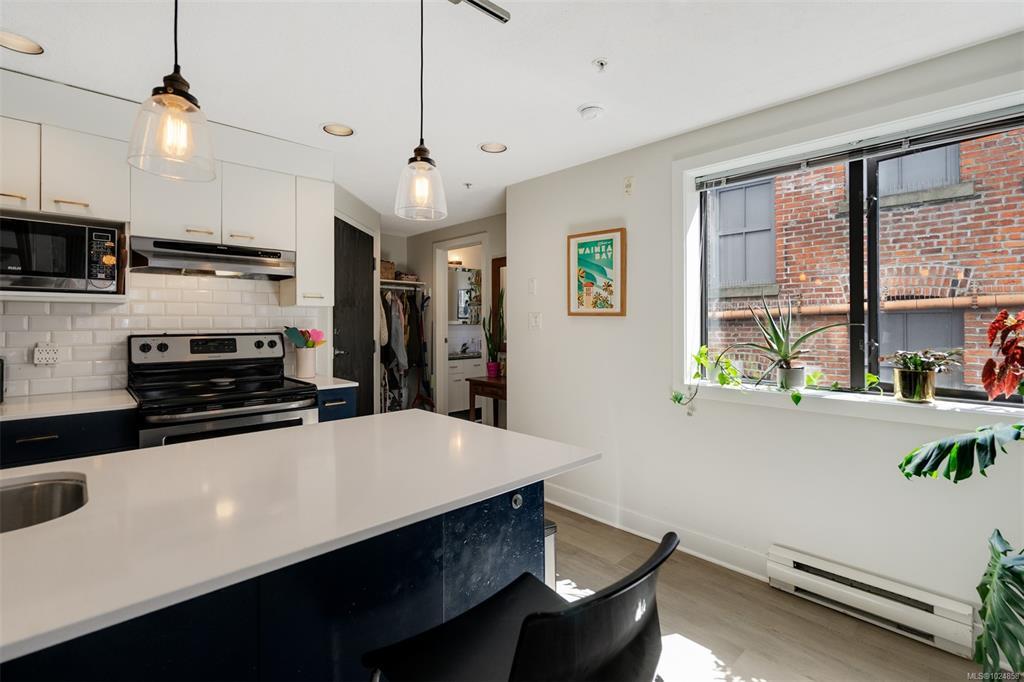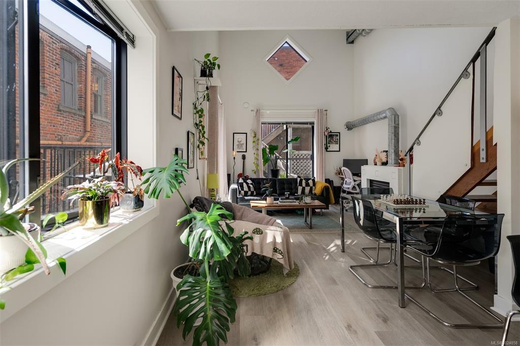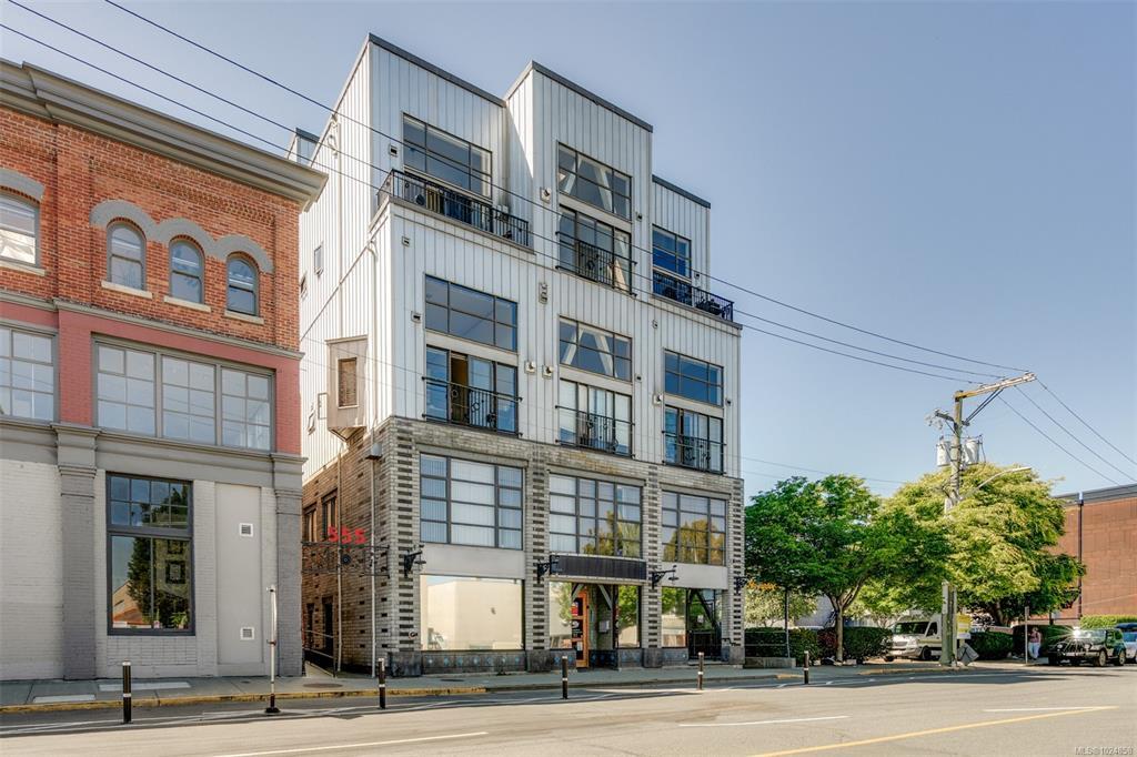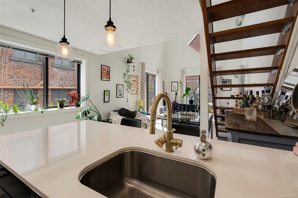 Stylish and unique, this two-level loft at Chatham Studio Lofts offers downtown living at its finest. Featuring soaring 16-foot ceilings, TWO balconies, and a bright corner layout with south-facing exposure, this unit is filled with natural light and character. The open-concept design includes a gas fireplace, stainless steel appliances, quartz countertops, and a loft bedroom with a large walk-in closet. In-suite laundry, secure underground parking (leased), and a storage locker are all included. There is a stunning rooftop patio with 360° views of the city and the ocean. Just steps from restaurants, cafés, breweries, shops, and the Inner Harbour. This is true urban living in one of the city’s most vibrant areas.
