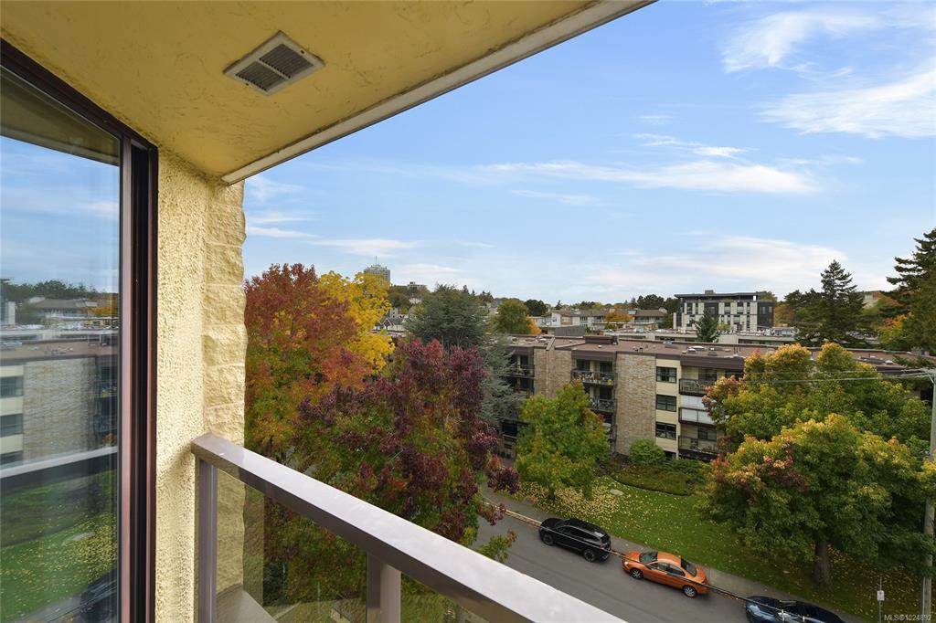 Top Floor steel and concrete 1 bedroom condo at Harrington House, near the Royal Jubilee Hospital complex and in close proximity to downtown Victoria, the Oak Bay Village, Camosun College, UVIC and more along with the Oak Bay Rec Centre and shopping nearby plus Christie's Carriage House Pub. Recently repainted with vinyl plank flooring throughout. Spacious living/dining area and open kitchen, bedroom with walk-thru closet and bath with updated flooring. Laundry room conveniently located just outside the suite door. Secured parking and bike storage. Fantastic location for hospital staff or a great investment opportunity.