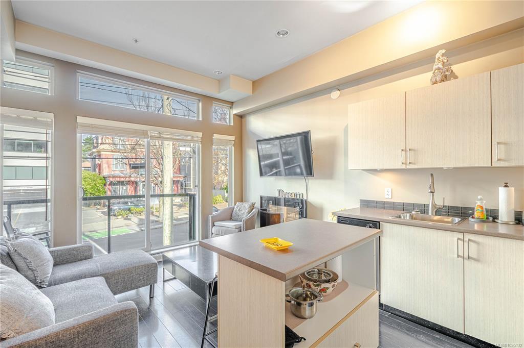 Welcome to the Zen. Unit 203 is a well-designed one bedroom Condo that is sure to please, the location couldn't be better right along bustling Fort Street and steps to Cook St., Village. The stylish Condo is perfect for part time or minimalist living, students, professionals and investors alike. Every inch is perfectly thought out to ensure maximum storage and space, zoning even allows for live or work. Boasting 10 foot ceilings, stainless steel appliances and in suite laundry. You have restaurants, pubs, market, cafes and shopping right at your doorstep. Enjoy breathtaking views at the rooftop terrace perfect for hosting a summer barbecue. On a main bus route to Uvic and walking distance to the ocean and Beacon Hill Park this is a lifestyle to be desired. Call today for your private viewing of this urban condo on the edge of Fairfield, Rockland and downtown.