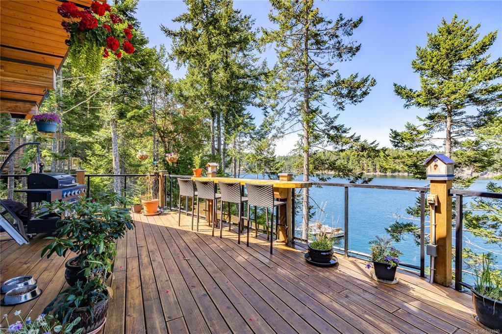Tucked away at the end of a private no thru road is your Mayne Island waterfront dream come true! Easy stone steps lead you down to a 2 storey, 4 bed, 3 bath, 2440 sq ft home perfectly perched on the edge of serene Campbell Bay. Featuring a Legal Dock, self-contained suite with separate entry on the ground level, open plan living spaces, large decks to take in the stunning views of the Bay, Mount Baker and beyond, with a beautifully landscaped yard throughout the 0.35 acre property, there isn't much else you could ask for. Whether you're looking for a vacation spot or a new place to call home, this spacious west coast style house checks off all the boxes. Come Feel the Magic!
