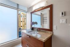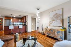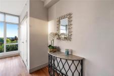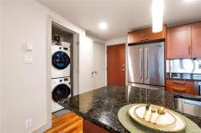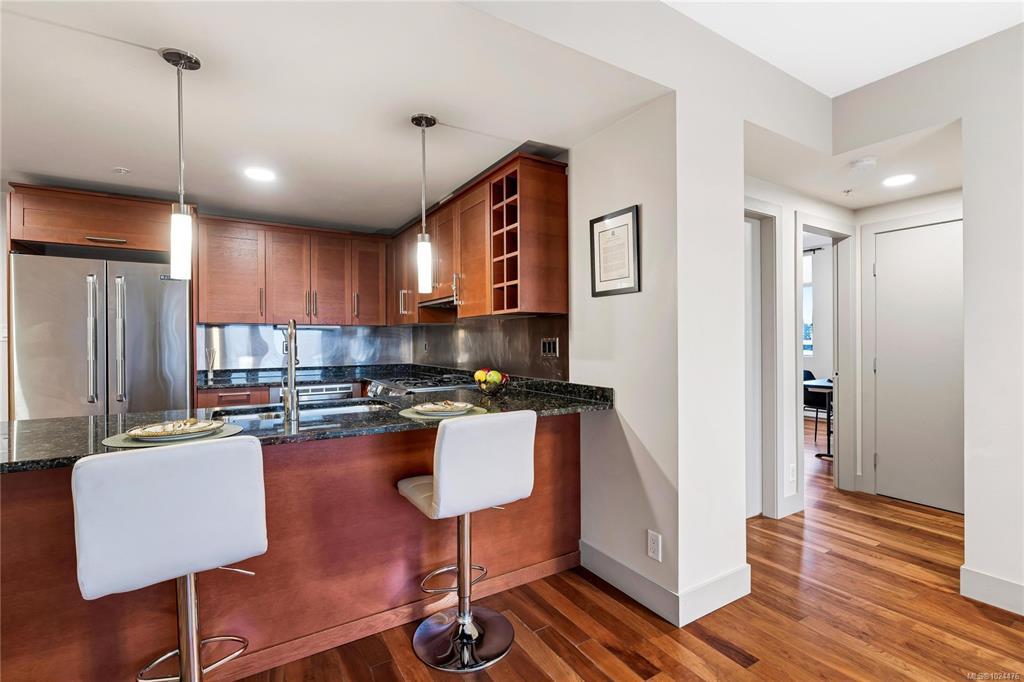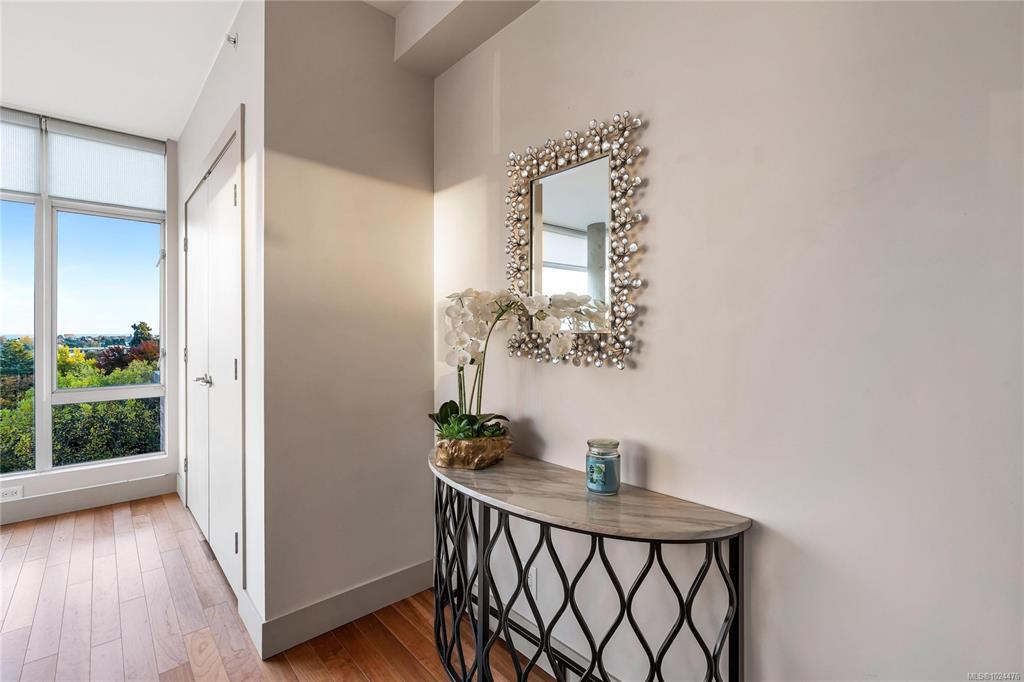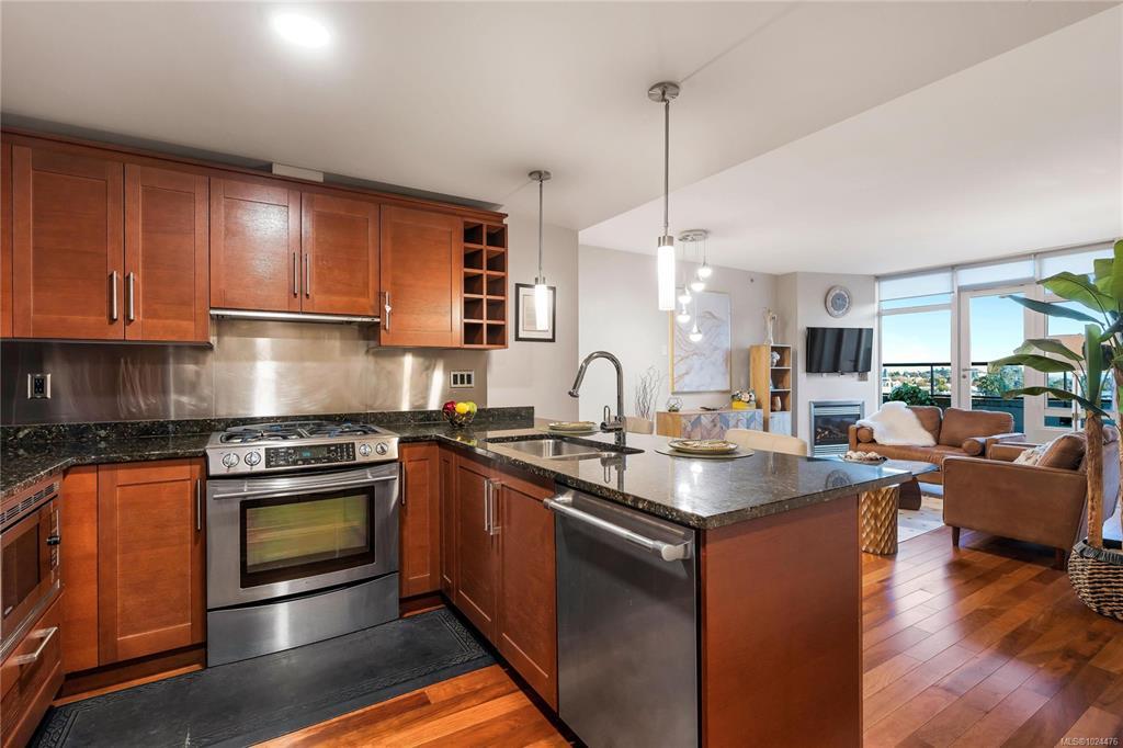 Enjoy unblocked panoramic views of the ocean, mountains, city, and St. Ann’s Academy from this beautiful corner sub-penthouse in the South Tower of ARIA. Perfectly positioned on the quiet side of the building, this home offers light, privacy, and a relaxed lifestyle in the heart of downtown.This 2beds & 2bath residence features a bright, open-concept living area with floor-to-ceiling windows, engineered hardwood flooring, granite countertops, Jenn-Air stainless-steel appliances with gas range, and a cozy gas fireplace. Both bedrooms are generous in size and ideal for comfortable everyday living. ARIA provides top-tier amenities including concierge service, a fitness centre with sauna and steam room, meeting and hobby rooms, and an inviting residents’ lounge. The building is pet-friendly, rentable, and has no age restrictions. A large, wheelchair-accessible underground parking stall and separate storage locker are included—perfect for seniors.