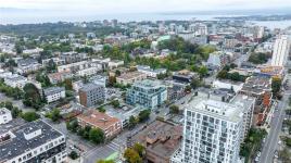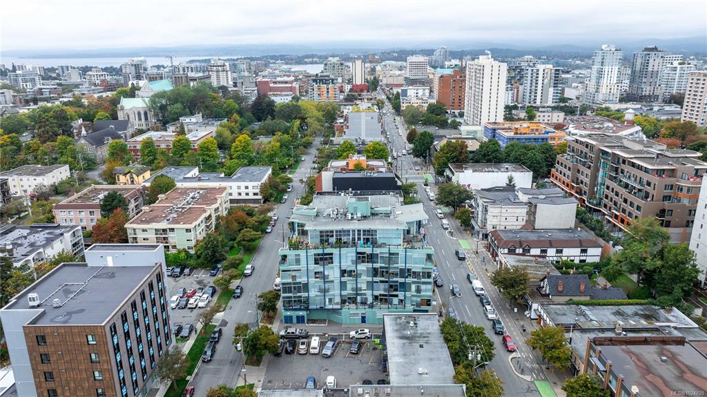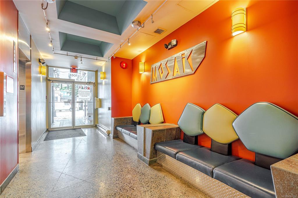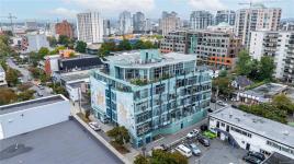 Welcome to unit 512 at the highly sought after Mosaic building. Located on the West side of the building to minimize traffic noises while appreciating stunning sunsets over the city. The charming hard wood floor is a beautiful contrast warming up the space. Open concept living including a full kitchen, gas fireplace and Murphy bed. There is a small juliet balcony that would be perfect to add a bar top to enjoy meals or a morning coffee while looking out over downtown Victoria. The bathroom is spacious with slate flooring and custom tile work. Located in the upper Fort District only minutes to downtown, Cook Street Village, the oceanfront and conveniently on major bus routes. In a safe area of town, you will have no concerns wandering through the adorable shops, bakeries, restaurants and more. Separate storage and a bike room, lots of street parking available for guests. Call today for your private tour of this charming studio home. The building is zoned for live/work life!