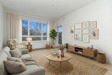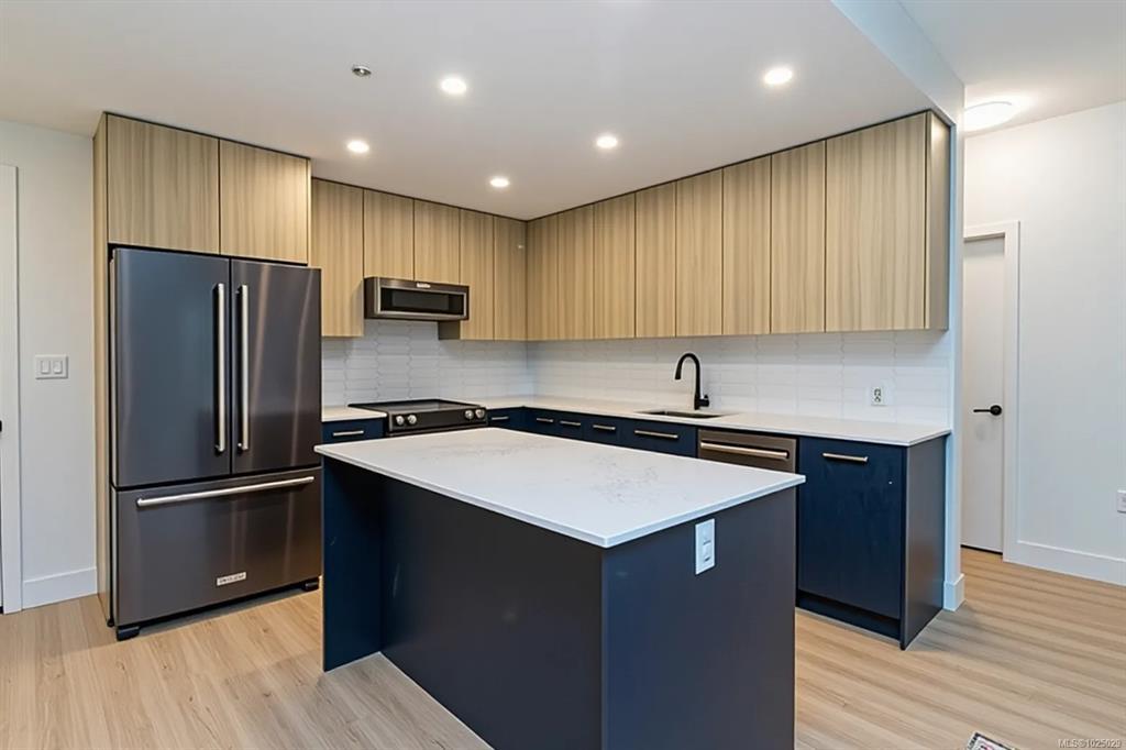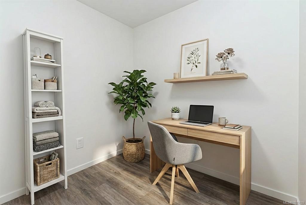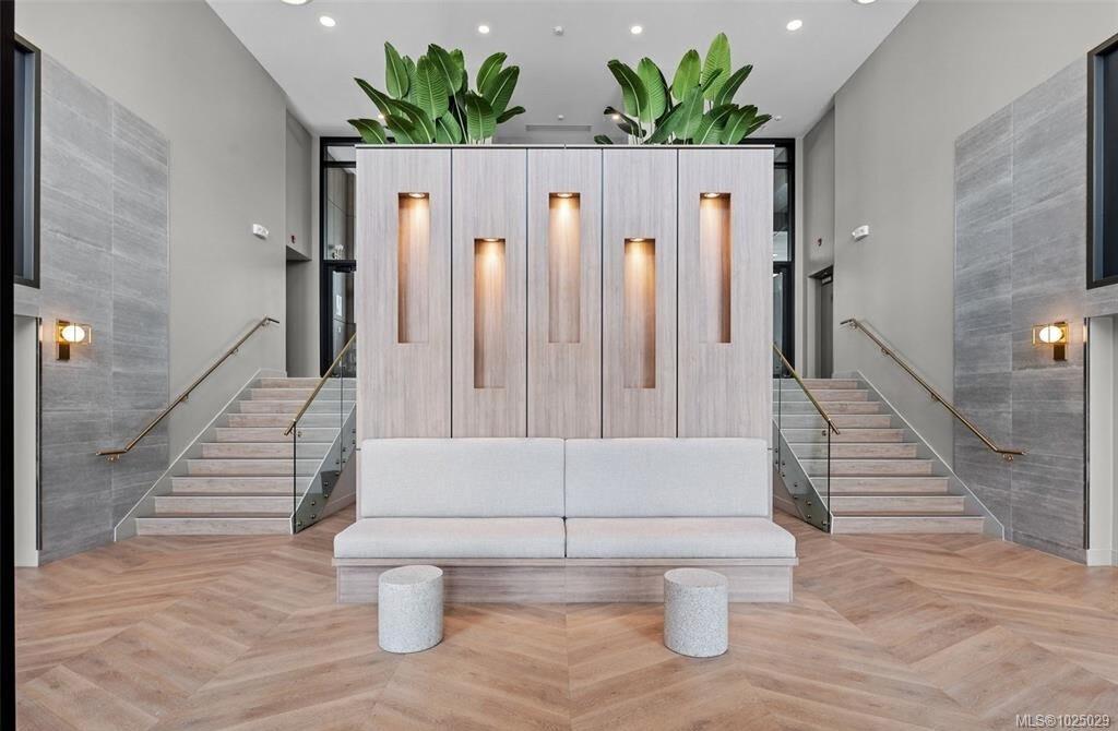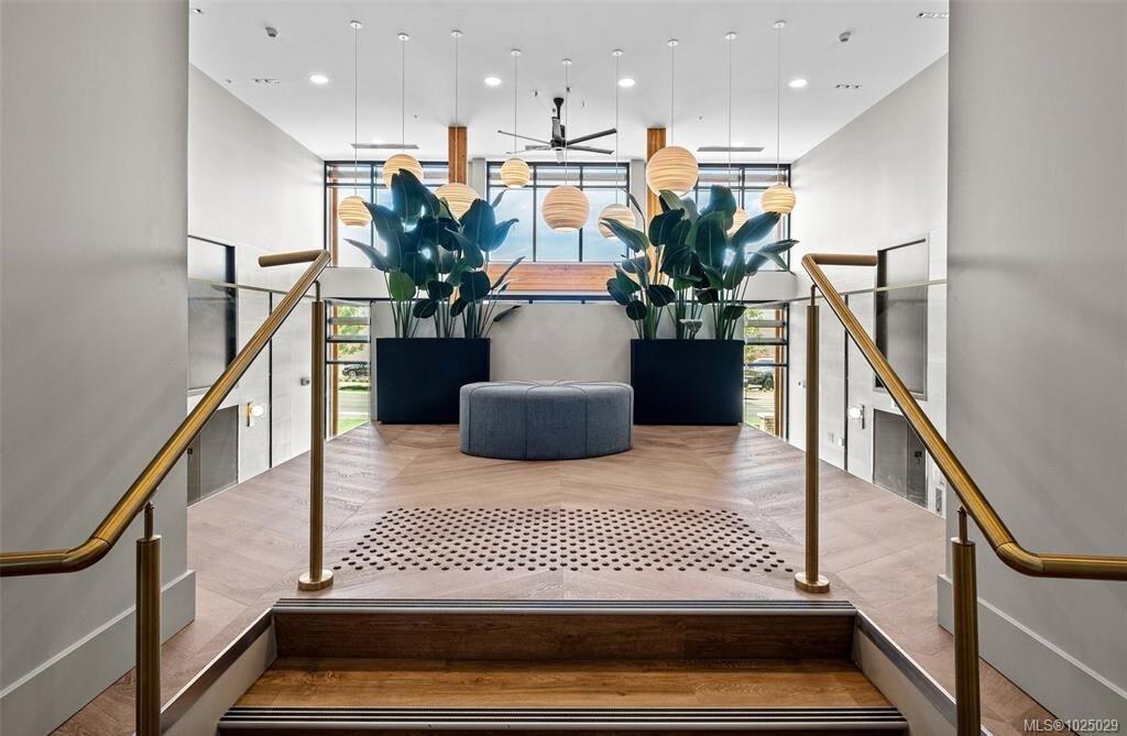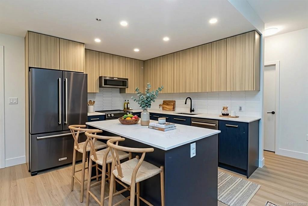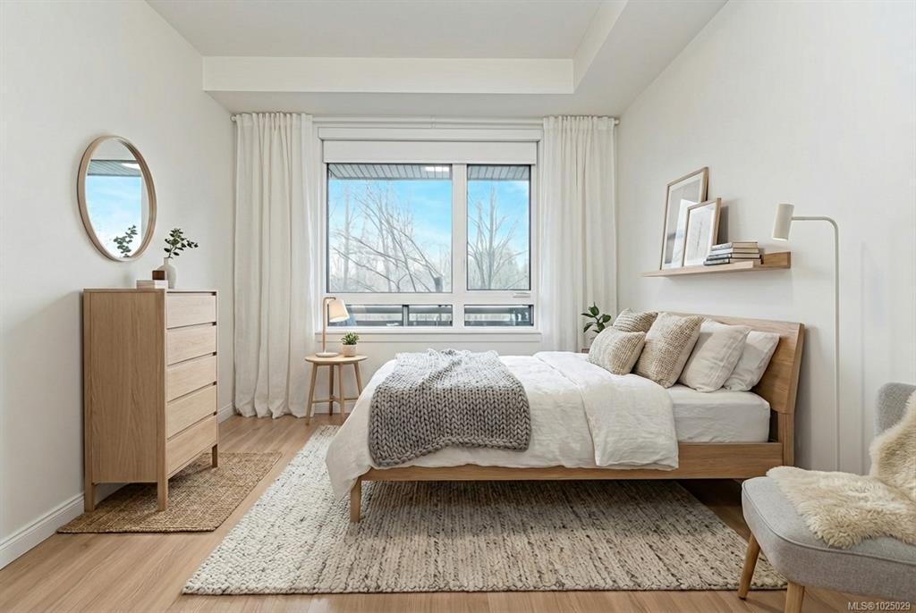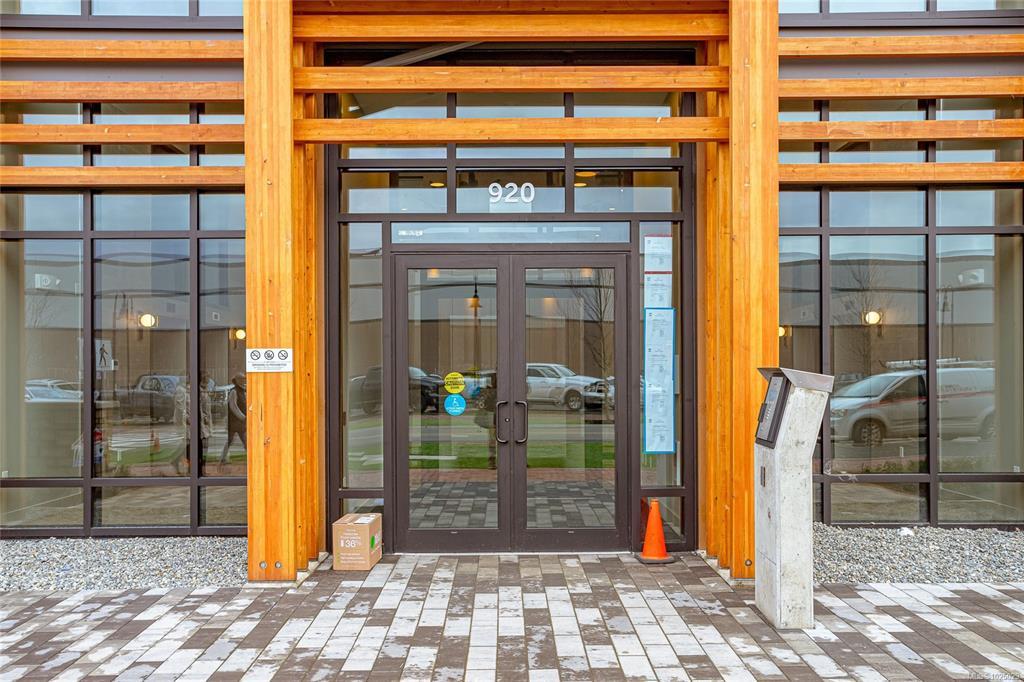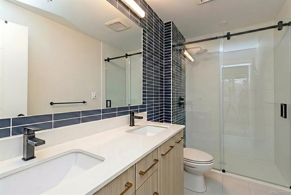 Welcome to Reunion at Belmont. This spacious 2 bedroom & 2 bathroom + den residence is ideally positioned on the quiet side of the building, overlooking the Galloping Goose Trail & beautifully landscaped green space. The thoughtfully designed floor plan features a refined kitchen w quartz countertops, stainless steel appliances, tiled backsplash & an oversized island w seating for two—perfect for entertaining & everyday living. Wide-plank vinyl flooring flows throughout, complemented by tile in the bathrooms, while the split-bedroom layout offers excellent privacy. A dedicated office nook & generously sized den or third bedroom provide flexible space to suit your lifestyle. Enjoy access to impressive amenities including an elegant common lounge w private patio, third-floor terrace w shared BBQ & a fully equipped gym. Secure underground parking, separate storage, a dog wash, off-leash dog park & steps to Belmont Market for dining & everyday essentials complete this exceptional offering.