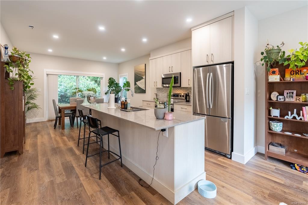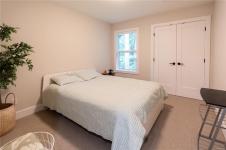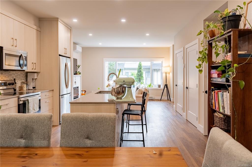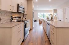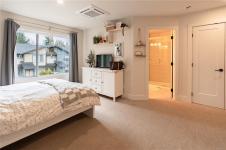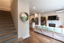 Welcome to this bright and private 3 bed, 3 bath end-unit townhome built in 2017. One of the best units in the complex in terms of privacy, quiet, and sun exposure. Freshly painted with extra windows and south exposure for excellent natural light. Open-concept main level features quartz countertops, an electric fireplace, and access to a private back patio. The heat pump system provides efficient heating & air conditioning, with added heat in the outdoor storage area. Upstairs you'll find two spacious bedrooms with a full bathroom, as well as a large primary bedroom with ample closet space and a deluxe ensuite featuring heated tile floors, dual sinks & a large shower. Parking allows for two vehicles. Central location, walking distance to multiple beaches and amenities. Ideal family, starter, or vacation home. Short-term rentals are not permitted.