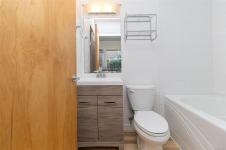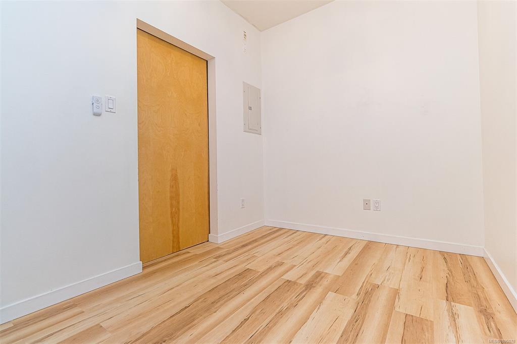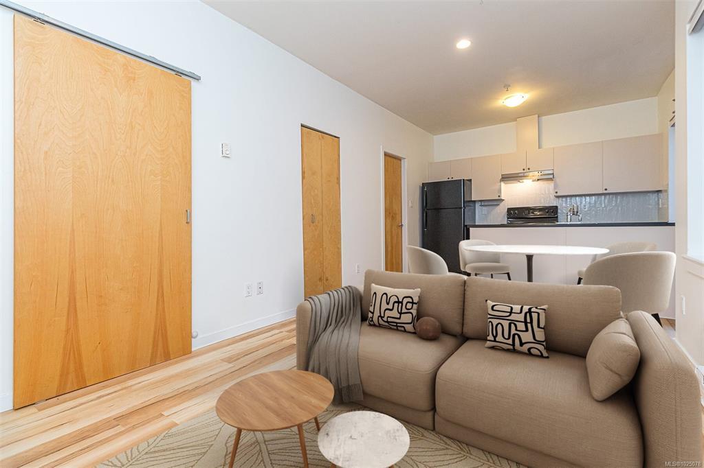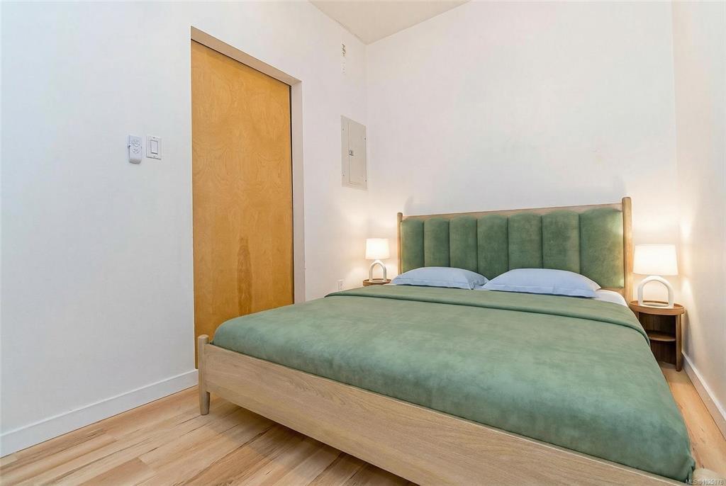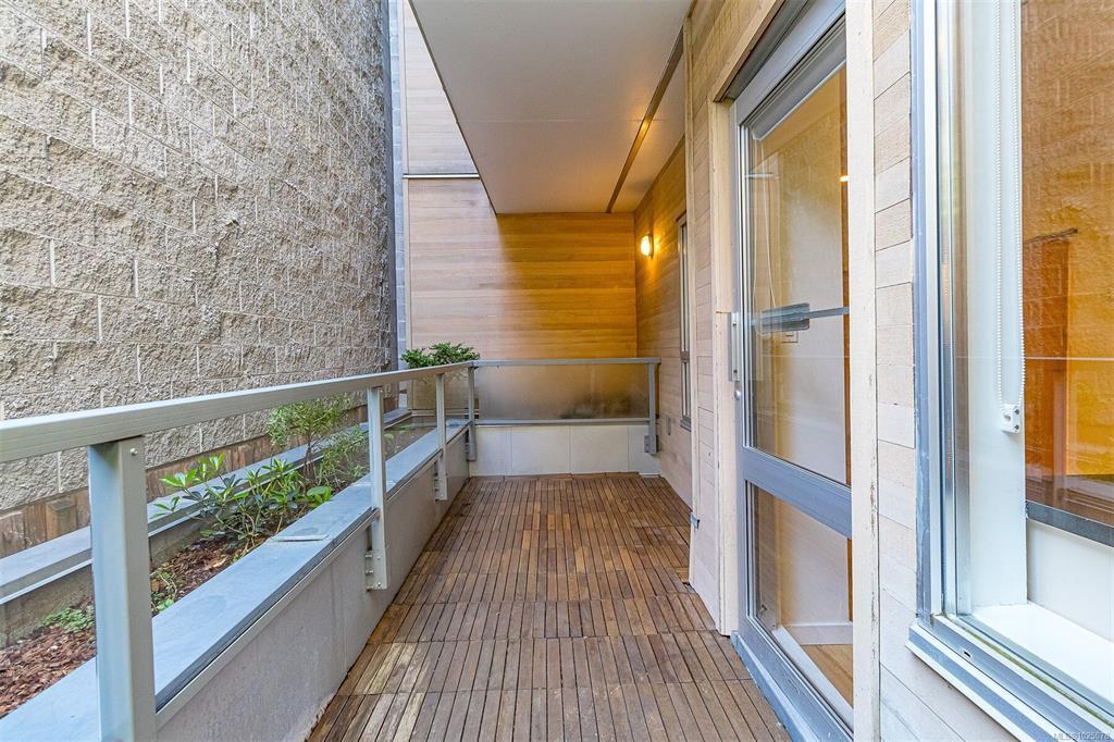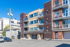 This downtown condo has the ideal layout and includes secure parking in addition to a generous and secluded balcony. A true 1 bedroom unit on the quiet side of the building with generous outdoor space overlooking a walled in courtyard far away from traffic and pedestrians. The bedroom features walk in closet, while recently updated four-piece bathroom hosts soaker tub, rainfall shower, and in-suite laundry. Open kitchen and living spaces have new full-sized appliances and plenty of cabinetry. Enjoy large windows and high ceilings throughout, as well as new vinyl plank flooring. Come live downtown in a small but excellently managed building on a quiet side street, within steps to everything downtown has to offer - bakery, grocery, bus lines, bike lanes, shopping, nightlife, and restaurants.