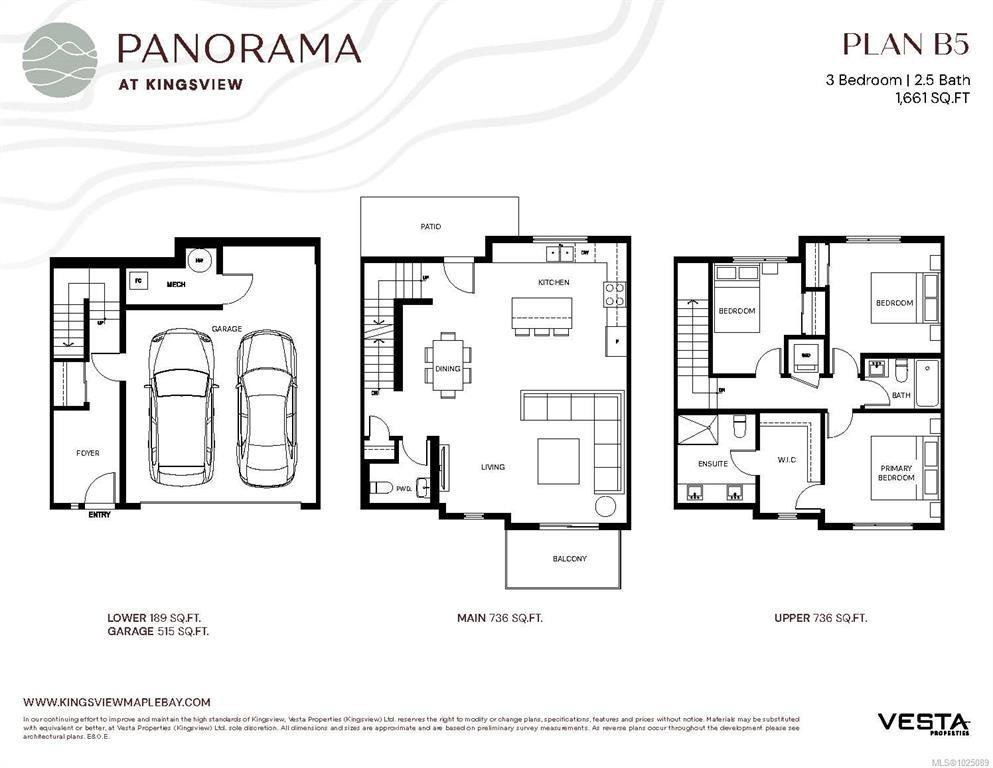 Panorama at Kingsview is a new collection of affordable, well-crafted townhomes designed for easy living in a scenic natural setting. Set in one of the Cowichan Valley’s most desirable neighbourhoods, this community offers beautiful valley views, direct access to hiking and biking trails and right across from a brand new park. This home features approx. 1,662 sqft of thoughtfully designed living space, including 3 bedrooms, 3 bathrooms, and a double car garage. Interiors boast bright, open-concept layouts with premium finishes, modern kitchens, and flexible spaces that suit a variety of lifestyles. Built with Vesta’s signature attention to detail and craftsmanship, these homes qualify for a Property Transfer Tax exemption and FTHB GST Exemption —making them an ideal choice for first-time buyers, young families, or anyone looking to right-size without compromise.