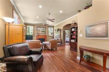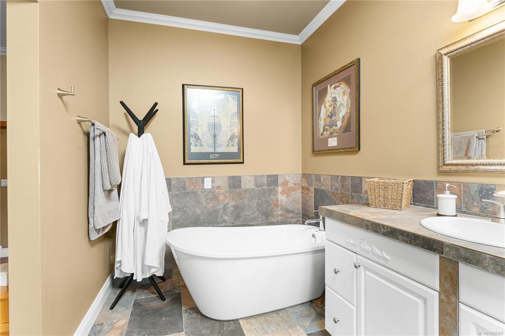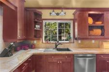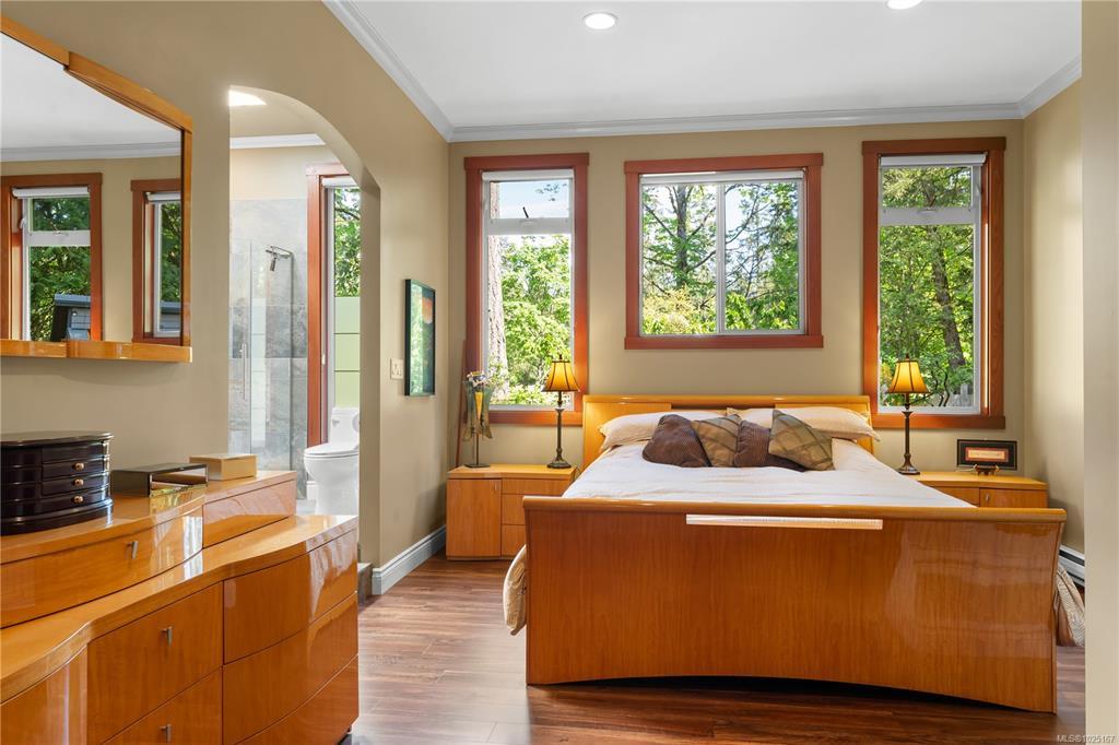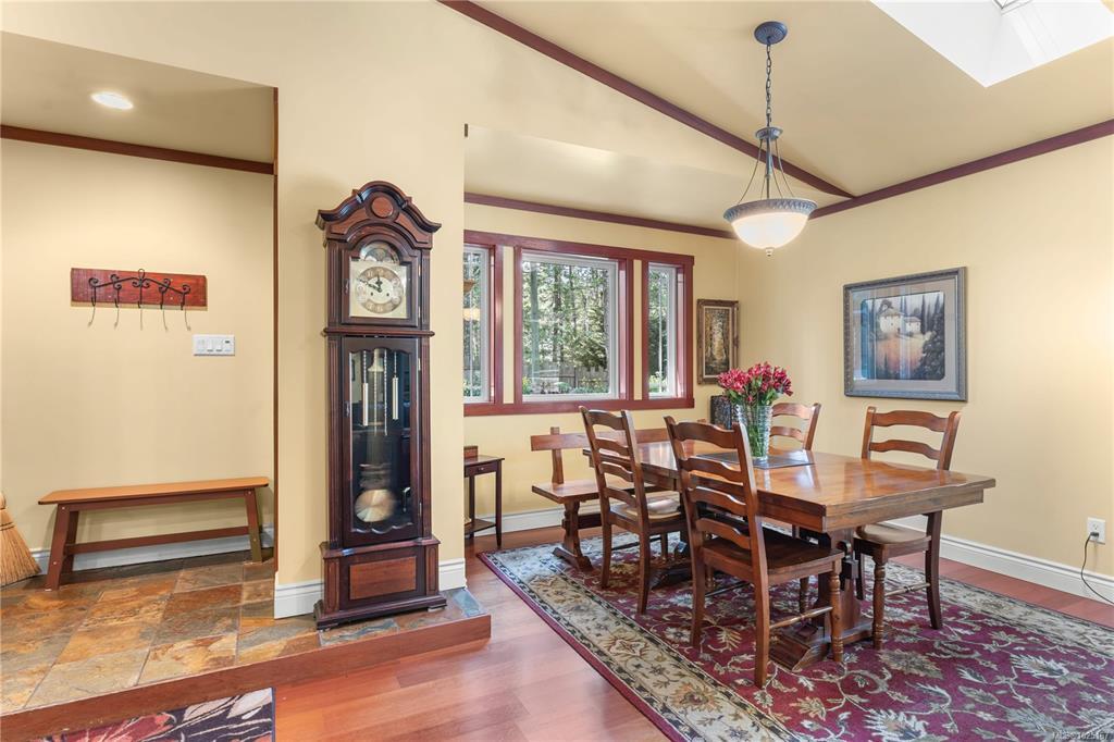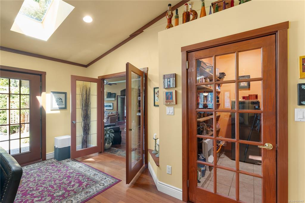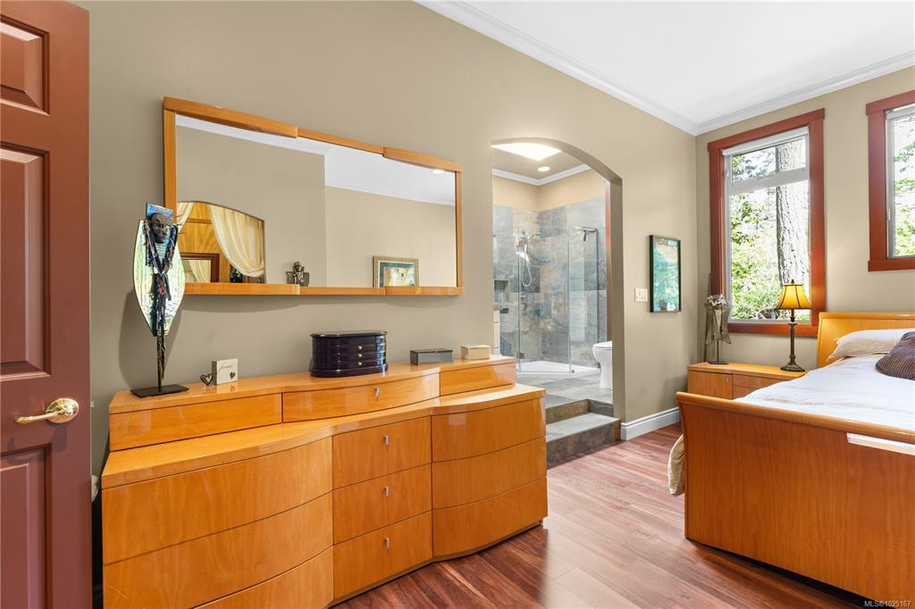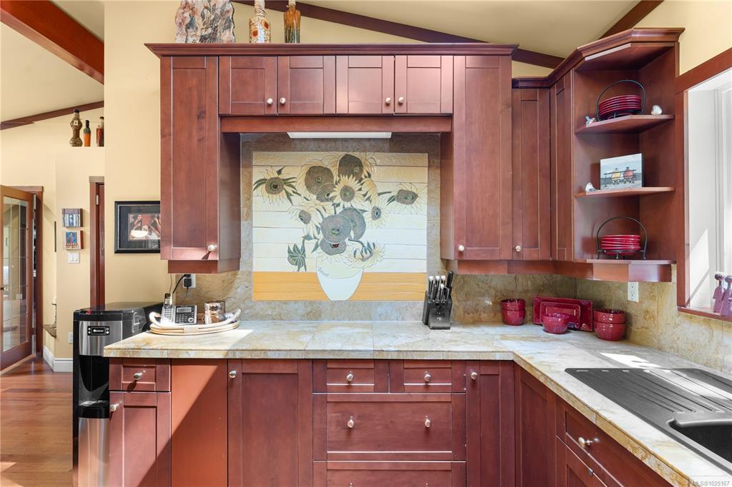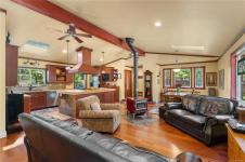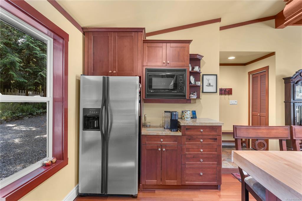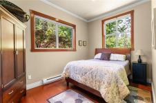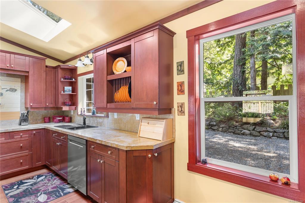 Welcome to a refined island sanctuary on Gabriola Island. This thoughtfully designed 2,650 sq ft rancher is set on a beautifully landscaped and private 0.42-acre lot, offering privacy, style, and modern comfort. Inside, soaring ceilings, skylights, and an open-concept layout bathe the home in natural light, creating an airy, welcoming atmosphere. The well-appointed kitchen flows seamlessly into the living and dining spaces, anchored by a wood stove that adds warmth and character. Multiple flexible living areas include a generous family room, a dedicated office, and a cozy media room. An attached garage provides excellent storage or the opportunity for a studio or workshop. Outdoors, the fully fenced and gated grounds are a standout feature, with mature fruit trees, established garden beds, a storage shed, hot tub and even a wired bunkie. A truly turnkey opportunity for those seeking quiet elegance and space to breathe. Msmts are approx. Verify all measurements and data if important.
