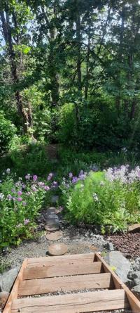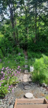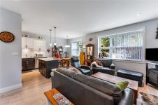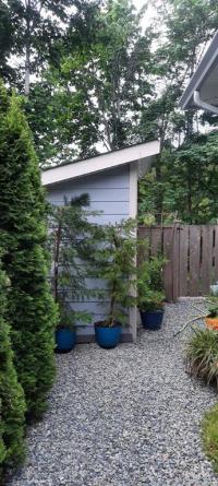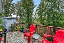 Welcome Home to this well appointed 8yr old, rancher style duplex, offering comfort, privacy and convenience. The layout features luxury vinyl plank flooring throughout, 3 bedrooms, including a spacious primary with a walk-in closet. The kitchen is equipped with quartz countertops, stainless steel appliances and plenty of storage/ counter space. It opens into a bright living area with natural light from large windows, accented by a cozy fireplace. An insulated, 3' high crawl space under the living area provides a 1000 sq.ft. of heated, dry storage. Sit on the private back deck or by the creek as you watch the deer, ducks, herons, eagles, owls and more as they soar above or forage at the back of the property. The south facing backyard with a handy garden shed is a gardener's delight. Booked today, for your private tour.