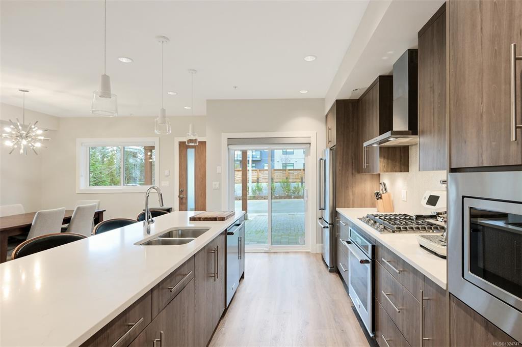 Open Sat Feb 7th 2-3:30. Welcome to this beautifully appointed end-unit townhome in a quiet complex of just 9 homes. With a sunny southern exposure, this home offers easy living and the bonus of a private garden oasis with a spacious deck, hot tub, and heated art studio or workshop. Inside you will find a well-designed home offering three bedrooms on the upper level, generous living spaces with 9-foot ceilings and a fabulous entertainer's kitchen on the main level and a lower level that includes ample storage, family room and an additional bathroom and bedroom. Quality features include natural gas, on-demand hot water, level 2 EV charger, upgraded lighting and custom closet organizers. Located right next to the Marigold Cafe and the Lochside Trail, enjoy an active, coastal lifestyle with easy bike rides to Sidney or Saanichton, nearby ocean walks, and everyday conveniences close at hand.