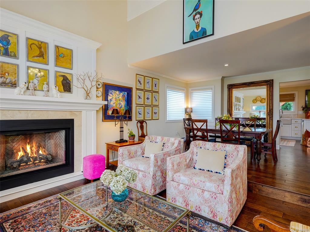 Elegantly situated in the heart of Saanichton, this meticulously maintained 4-bedroom, 3-bathroom home offers the perfect blend of refined style and relaxed living. Featuring formal living and dining rooms, an inviting family room, and two cozy gas fireplaces, the home is rich in detail with crown moldings and custom window coverings throughout. The fully renovated kitchen showcases Corian countertops, a high-end farmhouse sink, quality cabinetry, and an eat-in area ideal for everyday living. Updated bathrooms with heated flooring for comfort, while the spacious primary bedroom includes a generous ensuite. A double garage adds convenience, and the recently redesigned backyard and deck create a private, beautifully landscaped outdoor retreat. Timeless appeal, lovingly cared for, ample space for families, with a great flow. Thoughtfully updated and move-in ready, this home offers timeless elegance in a prime Saanichton location close to shops, schools, and amenities.