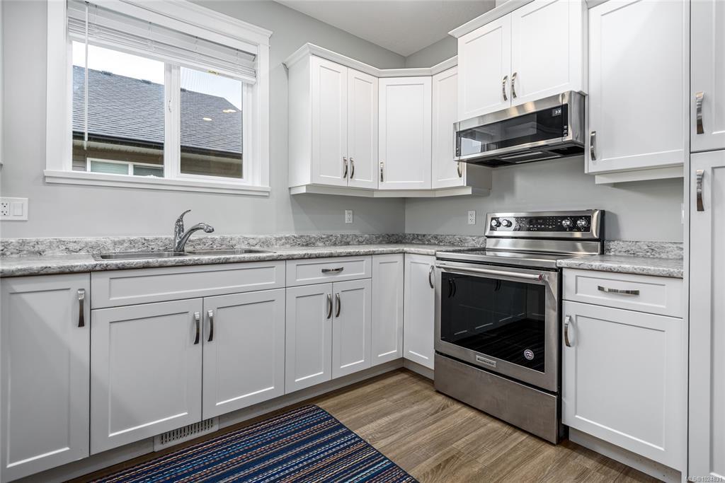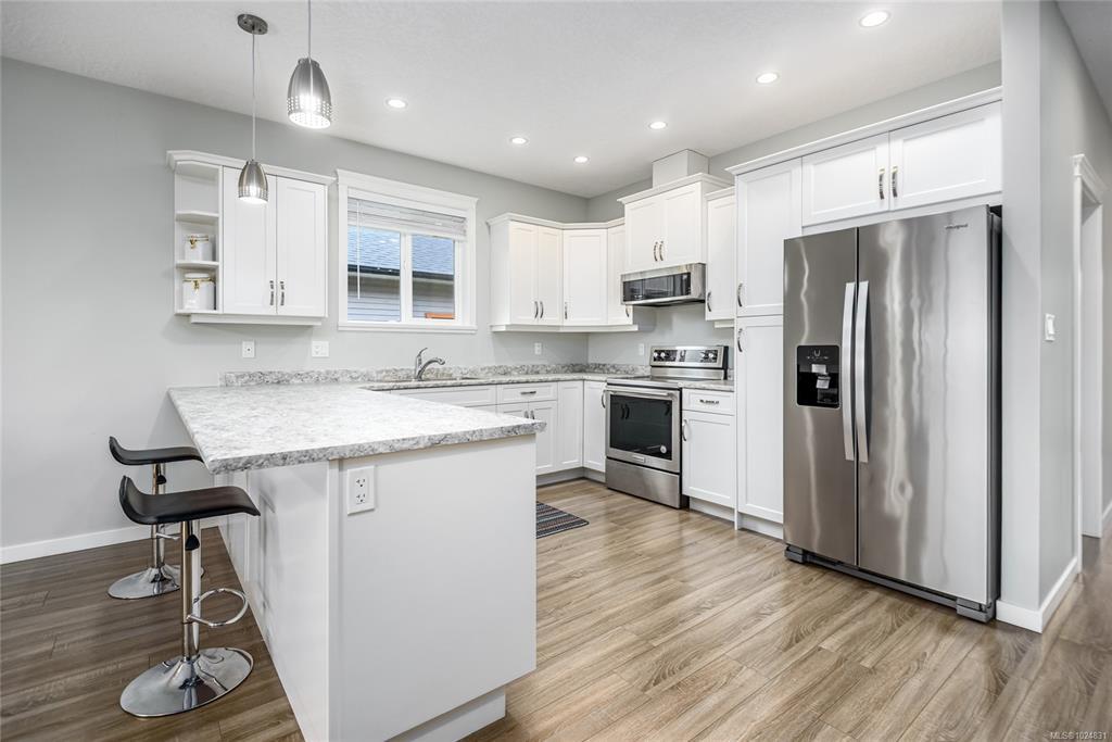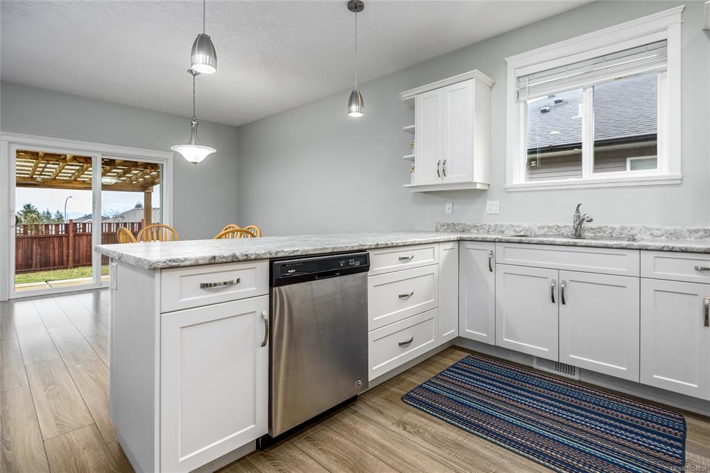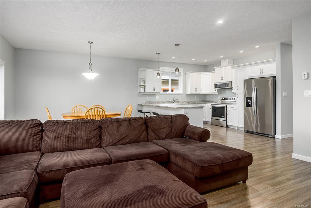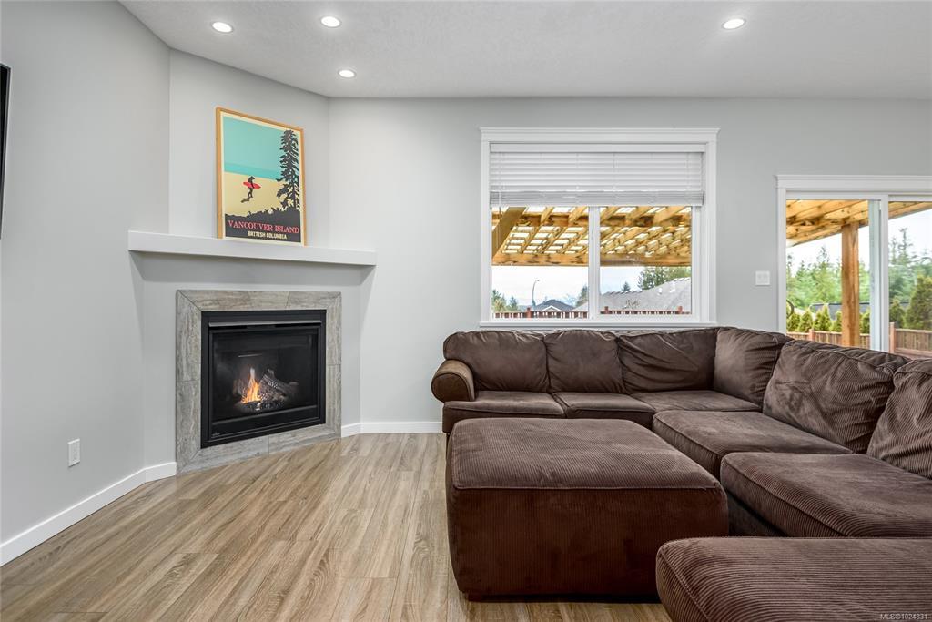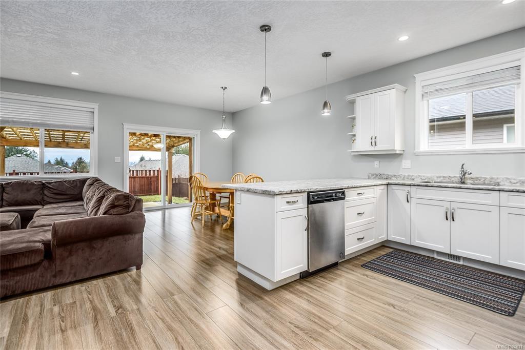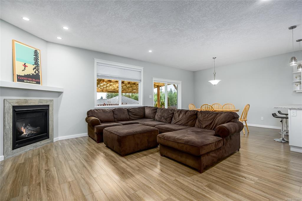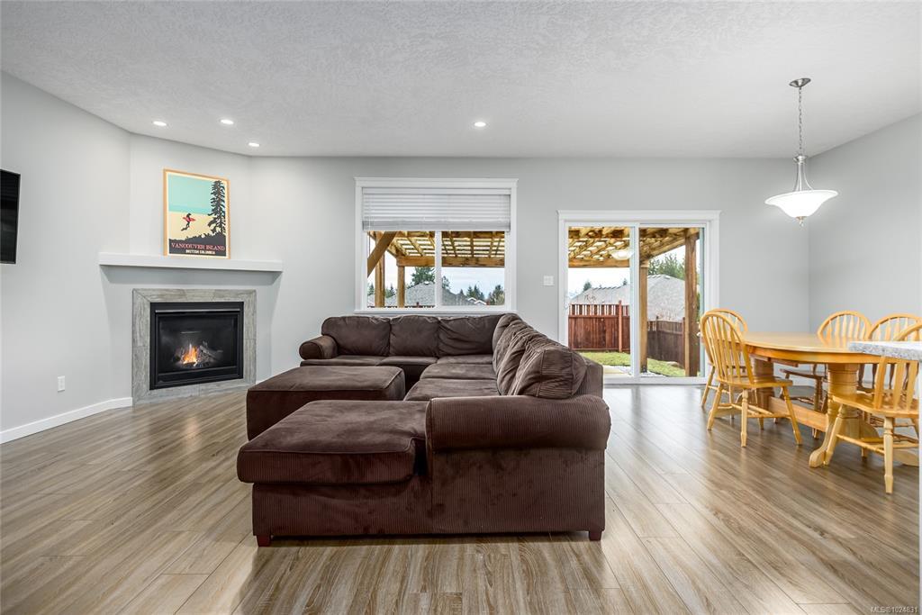 Welcome to this beautiful, bright 3-bedroom, 2-bathroom rancher in desirable Coal Valley Estates in Cumberland. Enjoy easy access to town, world-class mountain biking, outdoor recreation, and Comox Lake. This move-in-ready home features a spacious open great room layout with a large kitchen, white shaker cabinetry, stainless steel appliances, and durable laminate flooring throughout. Stay comfortable year-round with an efficient gas forced-air furnace, heat pump, and cozy gas fireplace. The spacious garage offers plenty of room to keep all your toys out of the rain. Outside, relax in the fully fenced rear yard with a private pergola-covered patio, plus mountain and ocean glimpses beyond. A fantastic opportunity—easy to show and ready to enjoy.