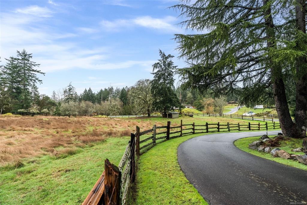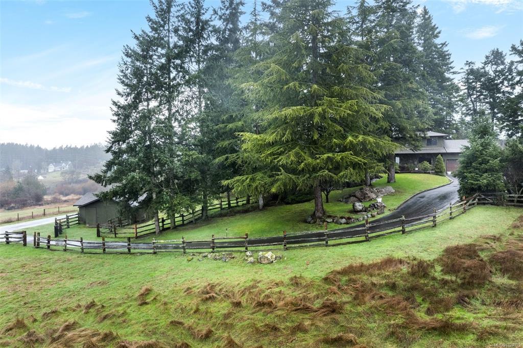 *Open House Sat. 12-2pm* Enjoy space and privacy on an idyllic acreage, just minutes from all amenities. Set on a corner lot along a quiet country road, this 5.49-acre property offers a highly sought-after hobby farm opportunity. The land is mostly cleared with extensive fencing and was previously used for cattle grazing. A strong well, fenced vegetable garden, and south-facing pastures create a beautiful outlook from the front porch. Multiple outbuildings support a wide range of uses, including a detached shop with sub-panel, large barn, greenhouse, chicken coop, and several covered carports for trailers, boats, and recreational toys. The well-maintained 1981 family home features 3 bedrooms, 3 full bathrooms, a double garage, mudroom, sunroom, and a family room with wet bar. Recent upgrades: HW tank (2022), generator (2024), and interior paint. Tranquil yet convenient, it's less than 1 km to Camosun Interurban and under 10 minutes to shopping, restaurants, parks, and hiking trails.