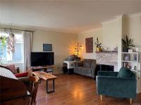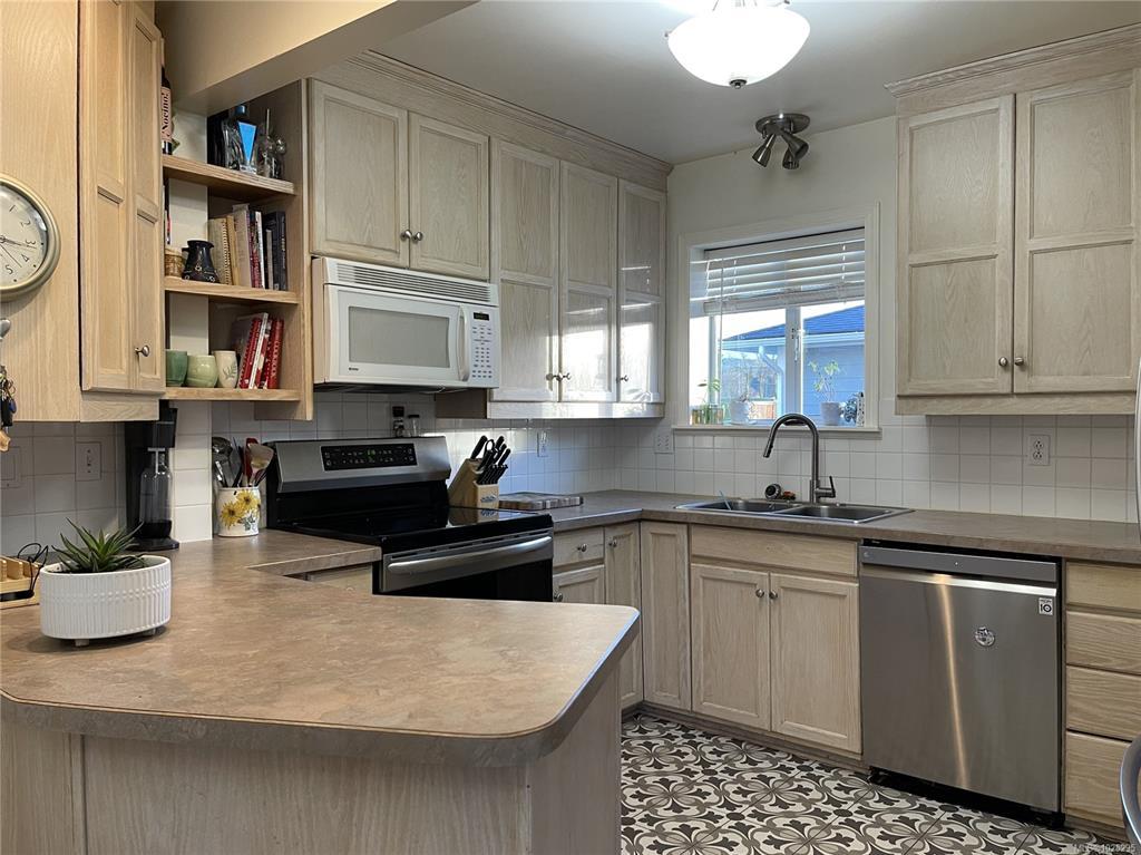 Charming character home nestled in a quiet neighborhood. Warm wood accents flow throughout, highlighting a bright, open living room with a cozy fireplace. The spacious eat-in kitchen features custom cabinetry, stainless steel appliances, and direct access to a deck overlooking the landscaped backyard with a tranquil pond. The generous primary bedroom offers a walk-in closet & private ensuite, complemented by 2 additional bedrooms, a loft-style sitting area, and a 4-piece main bathroom with a relaxing soaker tub. The lower level includes a fourth bedroom, recreation room, and a workshop with ample storage space. Enjoy outdoor living in the fully fenced yard, take in the mountain views from the covered front verandah, entertain on the deck and around the pond or enjoy a quiet day gardening. A detached 16x26 insulated and wired garage with alley access, 200-amp service, and a location close to shopping, recreation, and schools make this an excellent family home. Measurements approximate.