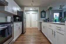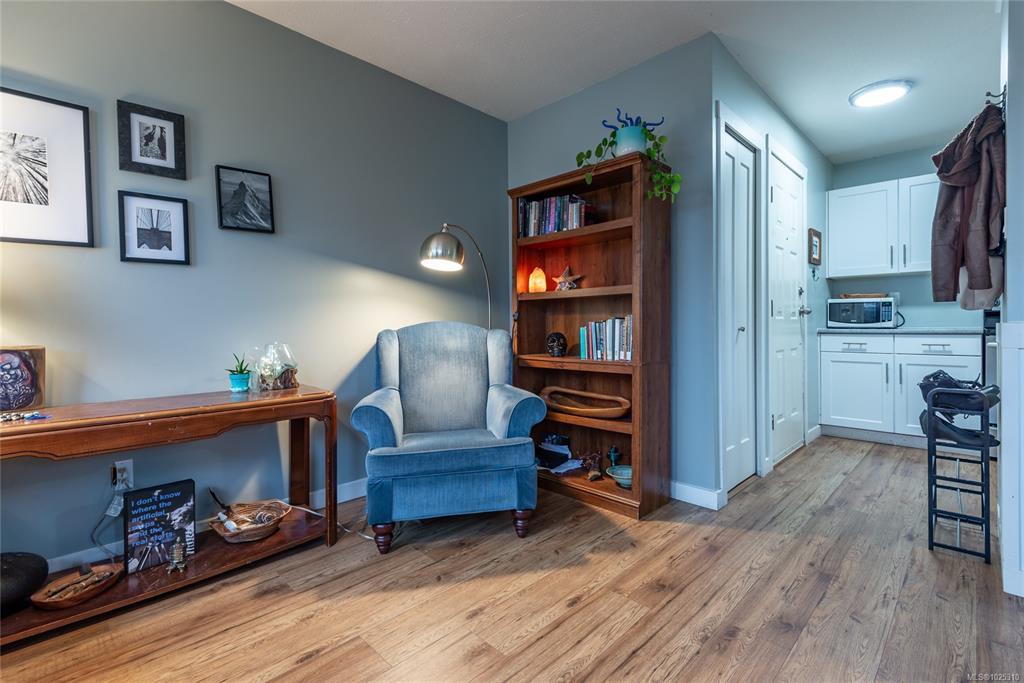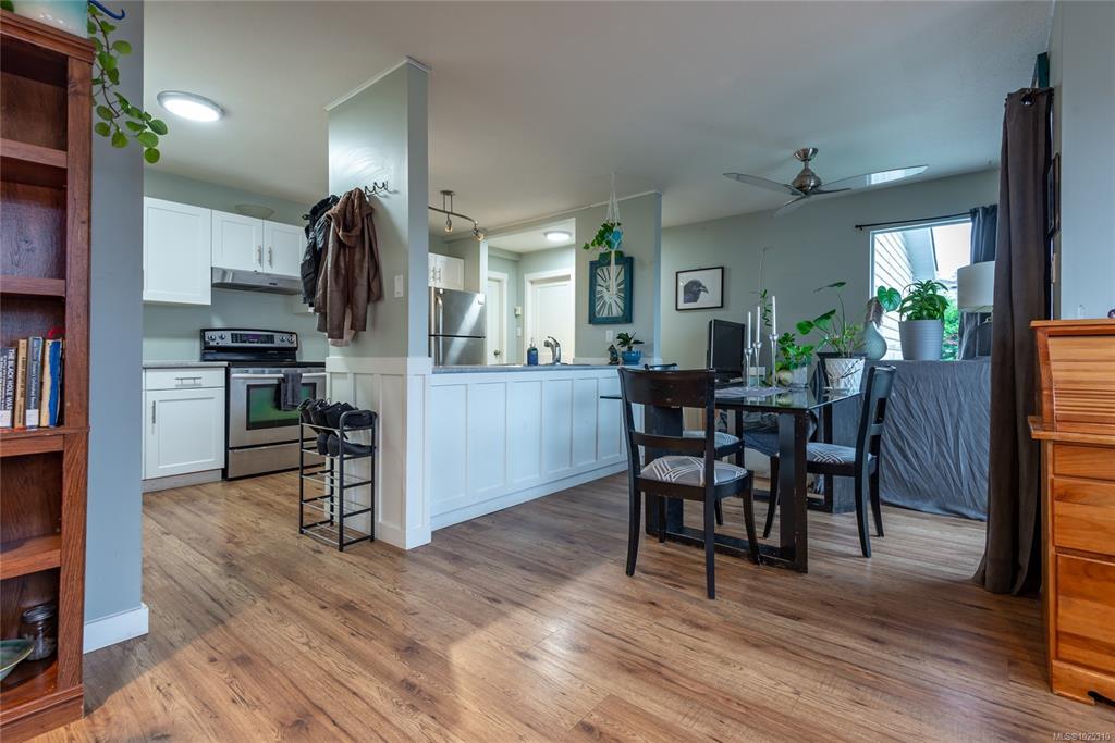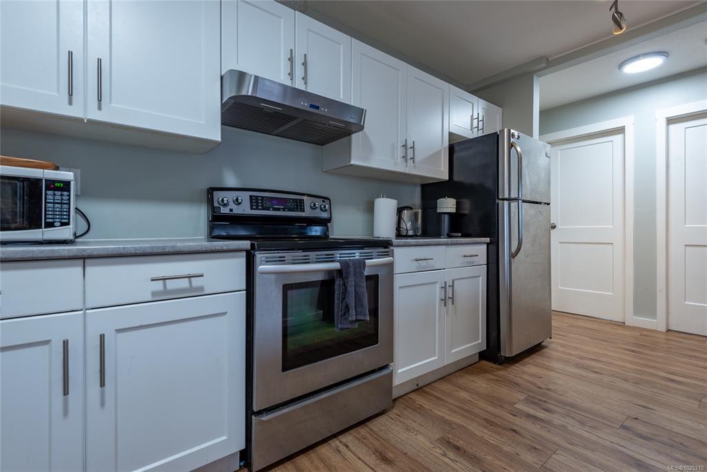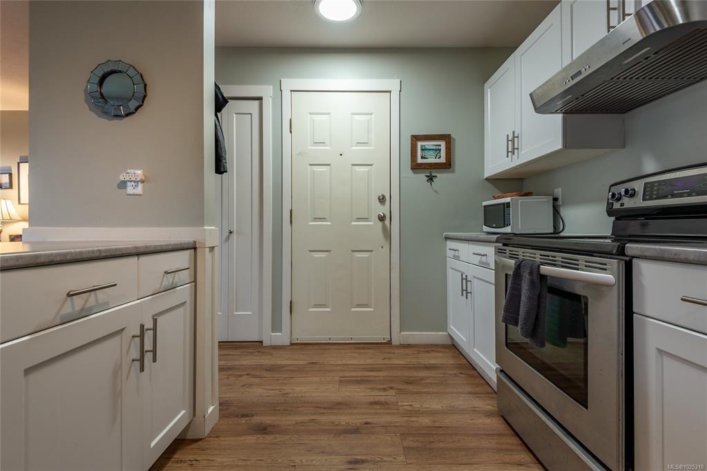 Recently renovated top floor 2 bedroom, 1 bathroom condo in Barclay Square! This unit offers a bright and sunny open floor plan with lots of windows and a slider to the deck. It features modern finishings and in-suite laundry. This well run complex allows for rentals and one cat or dog with no size limit. Great central location close to schools, parks, shopping and downtown Courtenay. Great value and perfect for first time home buyers, those downsizing or investors!