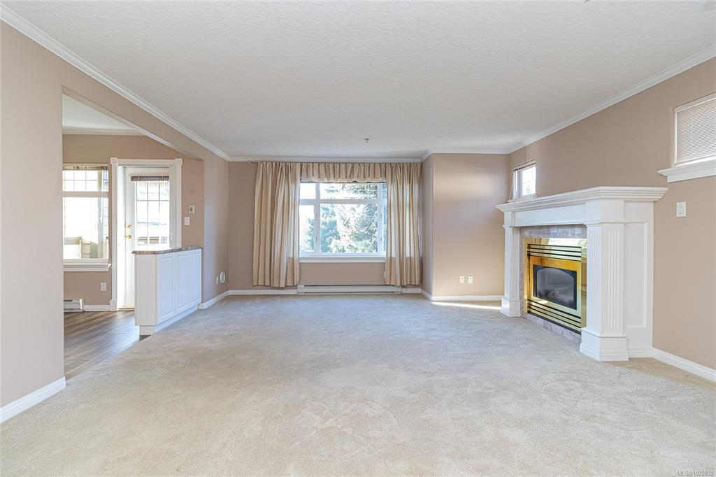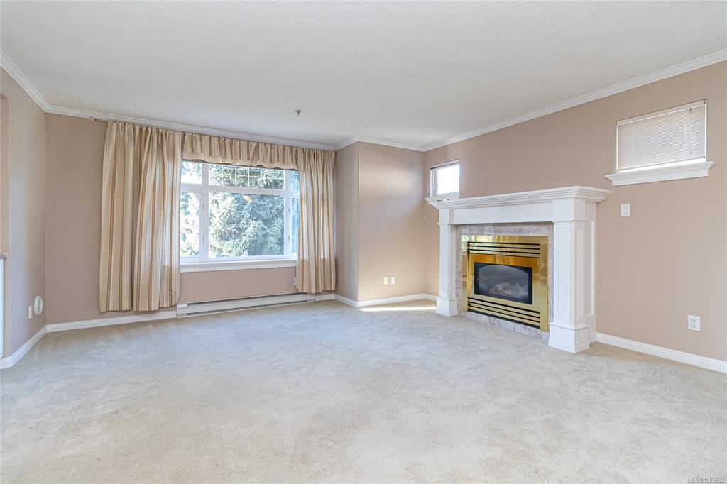 Garden-View Living in Broadmead Terrace. This two-bedroom, two-bath home offers exceptional privacy with bedrooms positioned at opposite ends of the unit. The generously proportioned living and dining rooms center around a cozy gas fireplace, creating an inviting space for both everyday living and entertaining. The kitchen features an eating area that opens directly onto your private patio. The primary bedroom easily accommodates a king-size bed and includes an ensuite with a tub, a separate shower, and closet. Includes a large laundry room, complete with additional storage. The suite also includes secure underground parking and a separate storage locker. Broadmead Terrace is a sought-after, adult-oriented complex distinguished by its management and stunning grounds featuring ponds, fountains, and meandering walkways. Located just a short stroll from Broadmead Village, Royal Oak Shopping Centre, walking trails, transit, and all essential services. Open House - Sat, Feb 7 (2-4 pm)