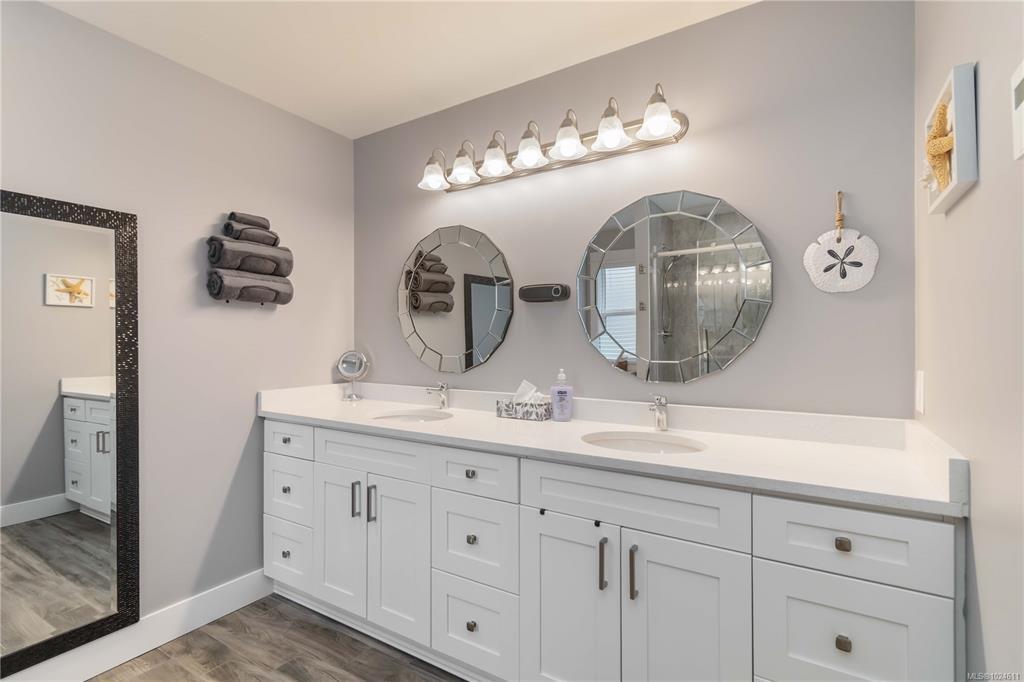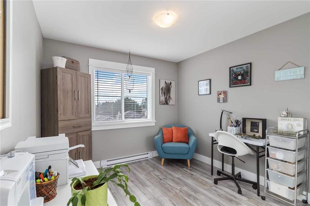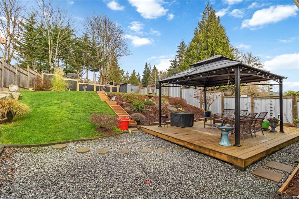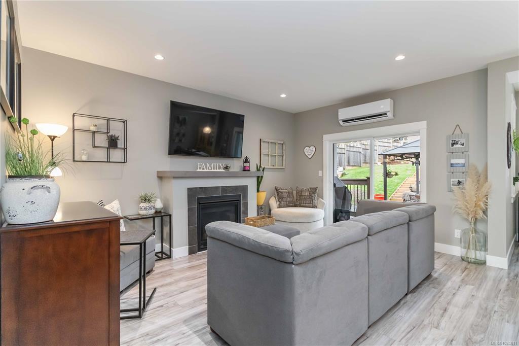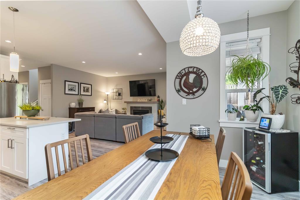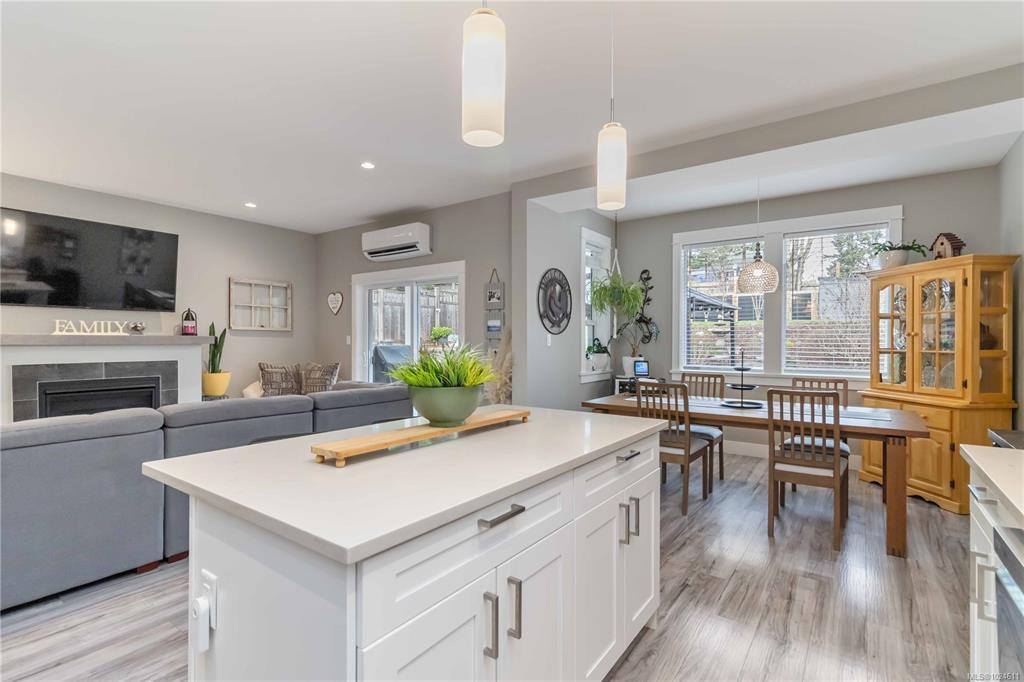 Nestled in a friendly, family-oriented neighbourhood, this lovely home is just minutes from the heart of downtown Sooke, with easy access to shops, restaurants, parks, and outdoor recreation. Offering over 1,550 sq ft of comfortable living space, generous outdoor areas, and picturesque mountain views, this property truly stands out in today’s market! The main level features a bright, open-concept layout with a cozy gas fireplace in the living room and a well-appointed kitchen with quartz countertops. A versatile den adds flexibility as a home office or potential fourth bedroom. Upstairs, you’ll find three spacious bedrooms along with a conveniently located laundry room. The primary suite is a relaxing retreat, complete with a walk-in closet and large ensuite with heated floors. Outside, the backyard is perfect for entertaining or unwinding, with a back deck already plumbed for a gas BBQ. Manicured large 7,000+ sq ft lot, there’s plenty of room for kids, pets, and even RV parking!