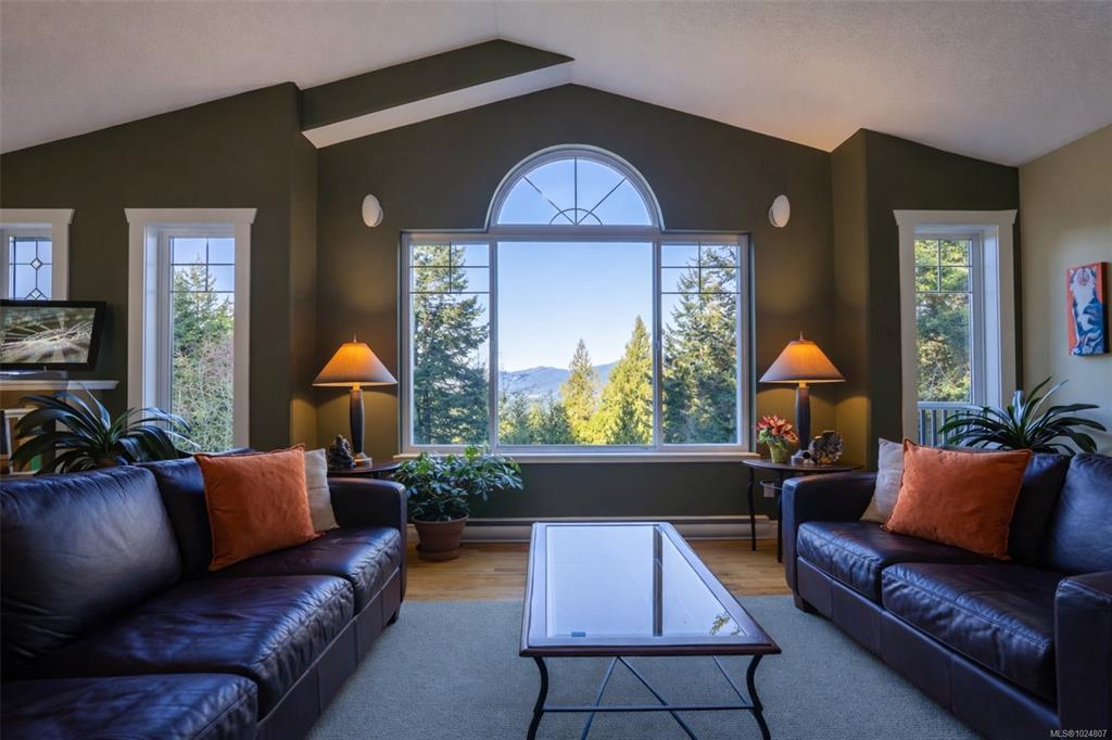 Set at the end of a winding, landscaped drive and surrounded by mature forest, this beautifully maintained executive home offers exceptional privacy and versatility in a peaceful setting. Built in 2005 and cared for by its original owner, it features quality construction and a layout ideal for families, multi-generational living, or future suite potential. The main level offers an open-concept design with wood floors, vaulted ceilings, and large windows with treed views. The kitchen features shaker cabinetry, stainless appliances, and a central island, flowing into the dining and living areas with a gas fireplace. A partially covered deck overlooks terraced gardens and forest. The primary suite includes a walk-in closet and spa-like ensuite. The lower level offers flexible living space for extended family or income potential. Additional highlights include a double garage, heat pump, new hot water tank, and generator wiring. Close to parks, trails, kayaking, and free from Sooke traffic.