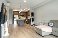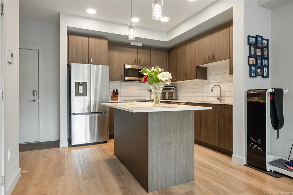 Welcome to Mosaic, Parksville’s newest award-winning, eco-friendly, modern contemporary building. This stylish 1 bed, 1 bath unit offers 675 sqft of efficient, high-end living in the heart of one of Vancouver Island’s most desirable communities. Enjoy triple-pane windows, a heat pump for year-round comfort, energy recovery ventilation, sleek modern finishings, and thoughtful design throughout. Enjoy quartz countertops, soft-close cabinetry, and vinyl plank flooring. Pets and rentals are allowed, making this a flexible investment or perfect home. Includes storage and parking. Located just steps to shops, restaurants, and world-class beaches—live where you vacation! Measurements are approximate; please verify if important.
