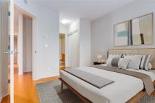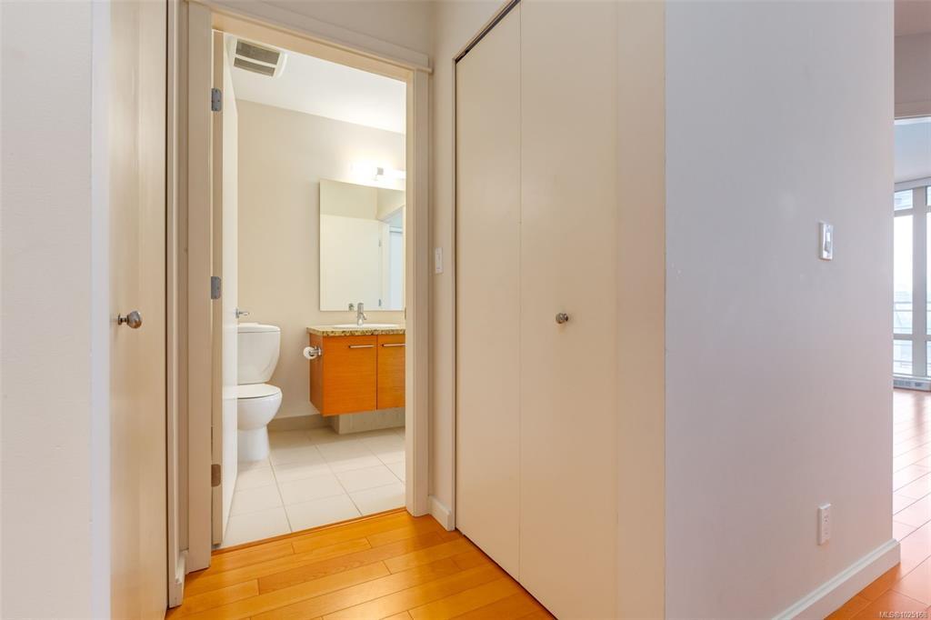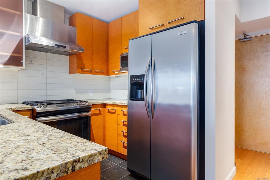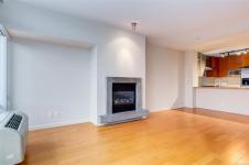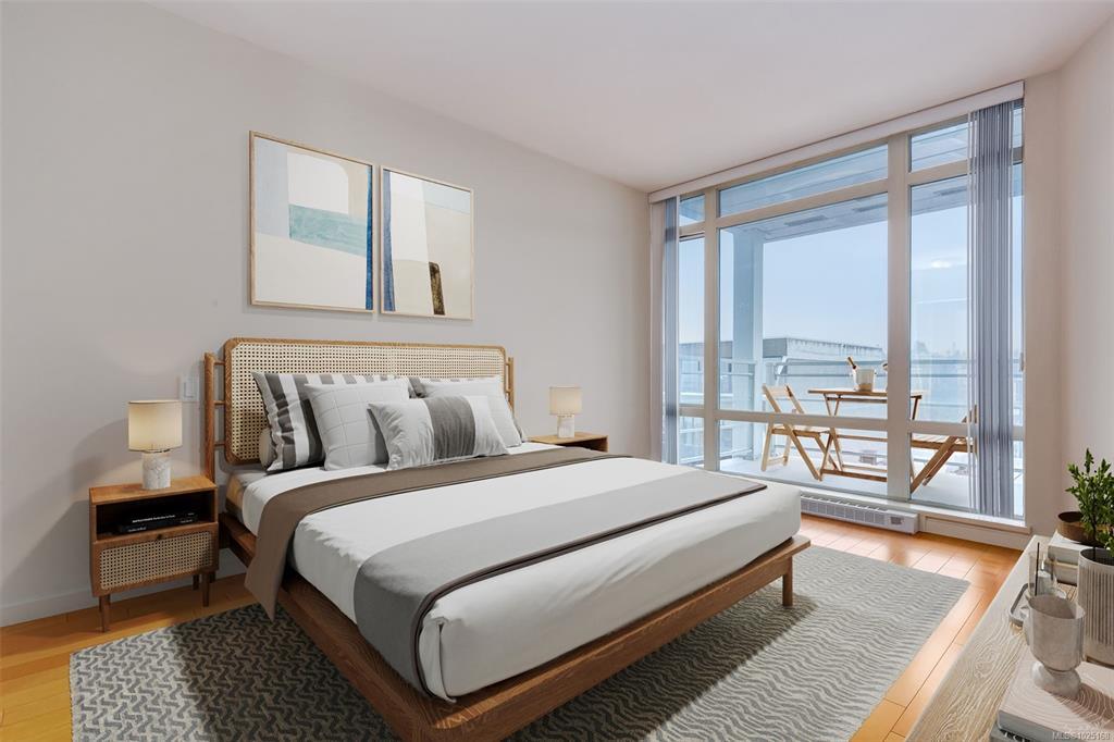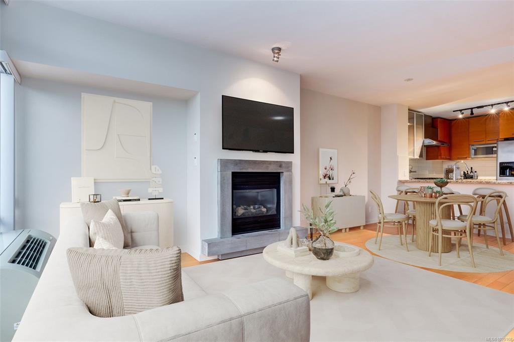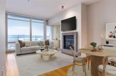 Floor-to-ceiling windows fill the home with natural light while showcasing views of Mt. Benson. The spacious layout features a natural gas fireplace, gas range stove, air conditioning, and a dedicated laundry and storage room/office space. Step onto the generously sized balcony to relax and unwind after a day by the water. Complete with underground parking and a storage locker, this well-appointed condo offers comfort, convenience, and the freedom to simply lock up and go.