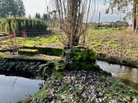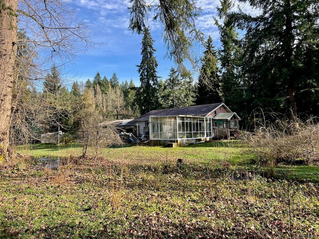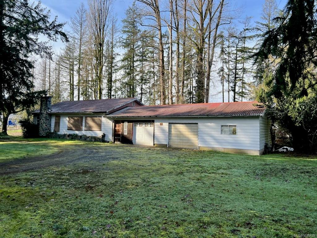 Situated on 2.3 acres, this property features a small watercourse running through the land and a two-bedroom home around 1300 ft2 with a two-car, approximately 1,000 FT2 garage. While the house and garage requires some TLC, it offers an excellent opportunity for buyers looking to build equity through their own improvements. Small shop on back of property around 150 ft2. The land is gated and fenced, backing onto a farm and conveniently located close to the airport, with easy highway access for commuting. The home, originally built in the 1950s, showcases a striking exterior rock chimney that serves as a strong architectural anchor.Renovations were started but not completed, The bathroom is not finished, leaving the finishing touches for the next owner. The property is on well and septic, and is zoned A1 Agricultural within the Agricultural Land Reserve, making it ideal for a small hobby farm.