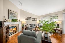 This elegant 1,800+ sqft patio home offers refined single level living with a thoughtfully curated layout. The residence features 2 spacious bedrooms, 2 full bathrooms, and a versatile den ideal for a private office or guest retreat. Exceptional comfort is provided by radiant in-floor heating as well as a heat pump, and two inviting gas fireplaces. The kitchen is both stylish and functional, showcasing stainless steel appliances, quartz countertops, and generous workspace for entertaining. Outdoors, a generous patio with gazebos opens directly onto a serene grassy common area, offering privacy and a park like backdrop. The garage has a separated workshop and additional storage. Located near shopping and the hospital all while being in a gated crown isle community. An exceptional opportunity for upscale, low maintenance living.