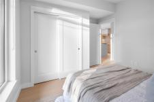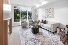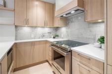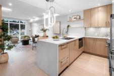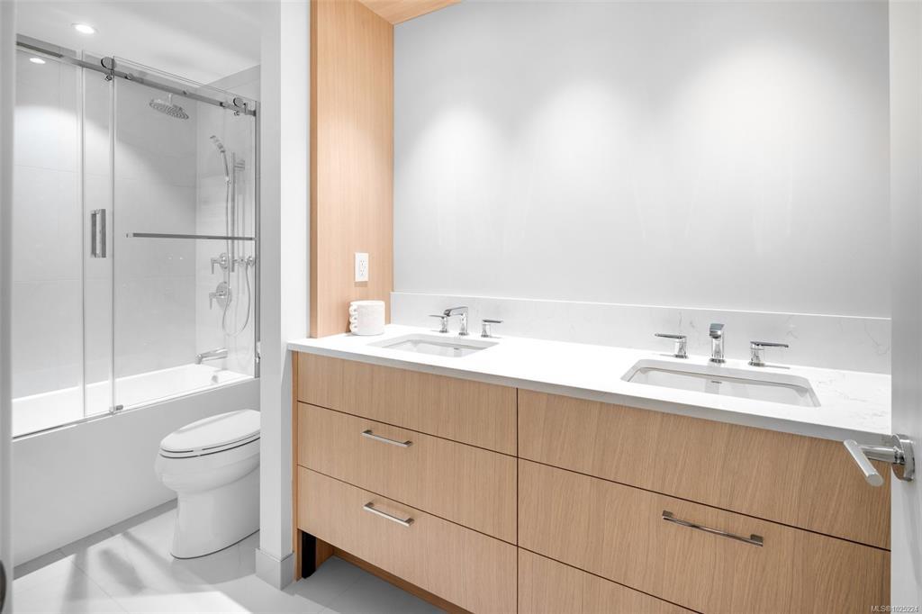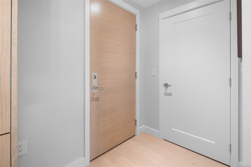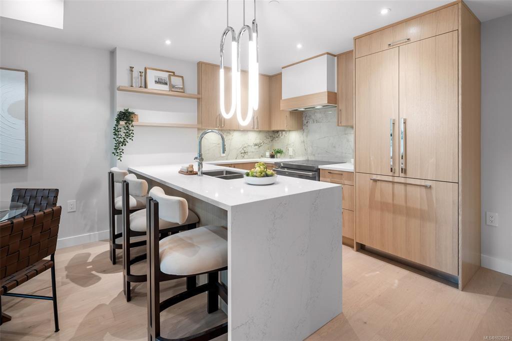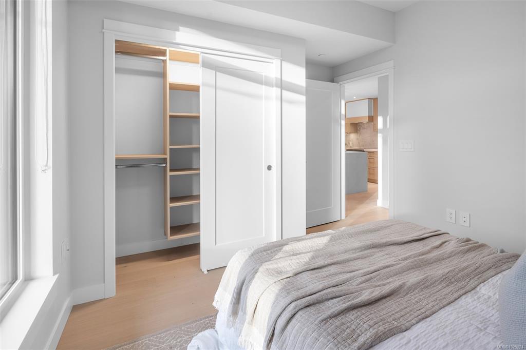 Wake up every morning to ocean views from your bedroom in Unit 208 at Tiller & Grace, an elegant east-facing 1-bedroom plus den residence by GT Mann. Inside, the thoughtfully designed open-concept layout offers generous space for both living and dining, anchored by a chef-inspired kitchen with a premium appliance package including a WOLF induction cooktop and oven, panelled Fisher & Paykel fridge/freezer, and Fisher & Paykel drawer dishwashers. Custom millwork by Harbour City Kitchens showcases rift-cut white oak veneer cabinetry and solid birch dovetail drawers, blending beauty with functionality. Enjoy year-round comfort with air conditioning, and relax on the east-facing balcony offering ocean views and an open-air feel. Unit 208 is a beautifully appointed home for those seeking refined design, coastal outlooks, and enduring craftsmanship. Ideally located in the heart of Cordova Bay, you are just steps from the beach, Mattick’s Farm, and the Cordova Bay Golf Course.