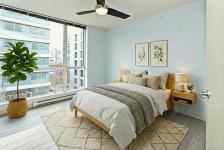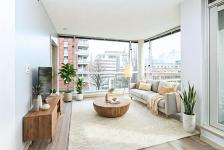 Be in the heart of it all at The Corazon, a 2005 steel & concrete building by Chard Developments offering refined downtown living. Bright south-east facing corner unit features floor-to-ceiling windows, over-height 9’ ceilings & beautiful natural light throughout the day. Positioned across from prestigious office buildings, the outlook offers increased privacy while still capturing the energy of the downtown core. Open-concept layout flows into a well-appointed kitchen w breakfast bar, stainless steel appliances & quartz countertops—ideal for everyday living & entertaining. The primary bedroom offers a walk-in closet & direct access to a spa inspired bathroom, while the dedicated office works well as a second bedroom, home office, or flex space. In-suite laundry & thoughtful updates create a modern, low-maintenance home. Step outside & enjoy downtown living—cafés, Hudson Market, shops just moments away. Secure underground parking, storage locker and bike storage included.