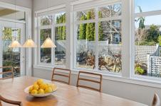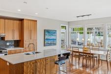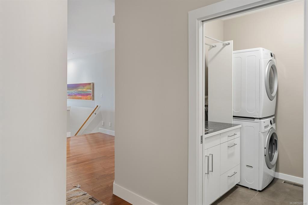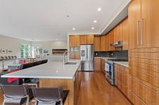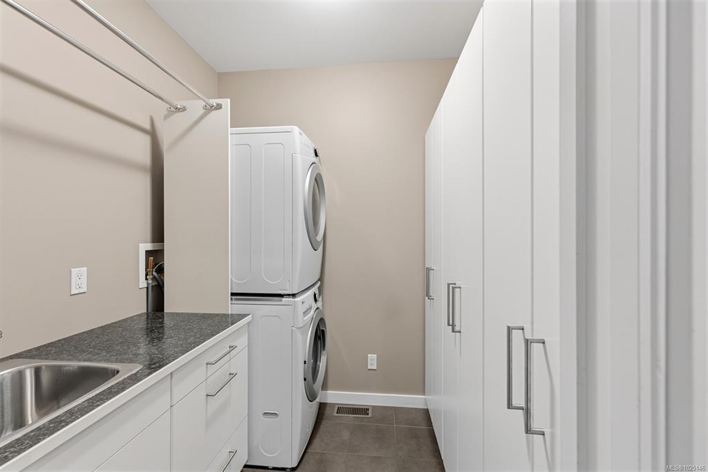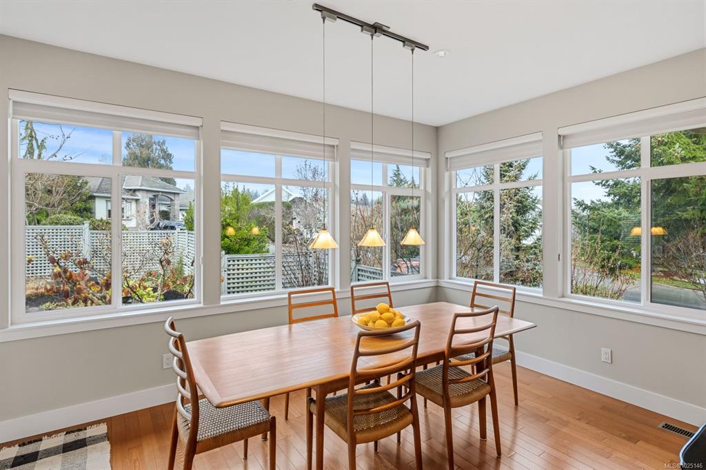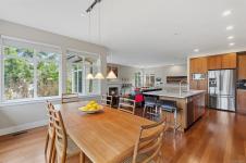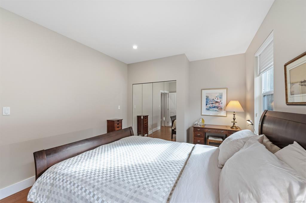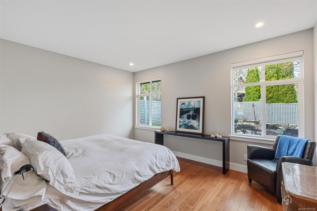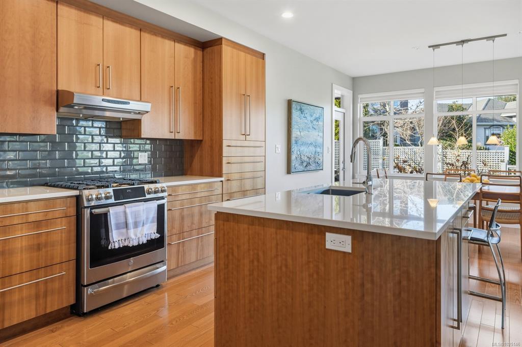 Stylish & thoughtfully designed, this 2945 sqft, 4 bed, 3 bath + den, custom home offers functionality, with a mid-century modern feel. Light-filled living on the main floor, including open-concept kitchen, quartz counters, gas range, & custom cabinetry. A window-lined dining area opens to a private courtyard. The living room is anchored by warm hardwood floors & a gas fireplace. The large primary features a generous walk-in & ensuite with double sinks. An office/den, second bedroom, laundry, & double garage are all located on the main floor. Down, a spacious family room for guests & media is complemented by a gas fireplace, 2 beds, bathroom & utility/storage area. Set on an elevated corner lot, you have a lofty outlook with privacy. Landscaped with native plants, designed by a master gardener with deer-resistant plants, rock features, mature trees, & river rock paths- creates a Gulf Island-inspired atmosphere. Next to the Crown Isle golf course, this property is a must see!