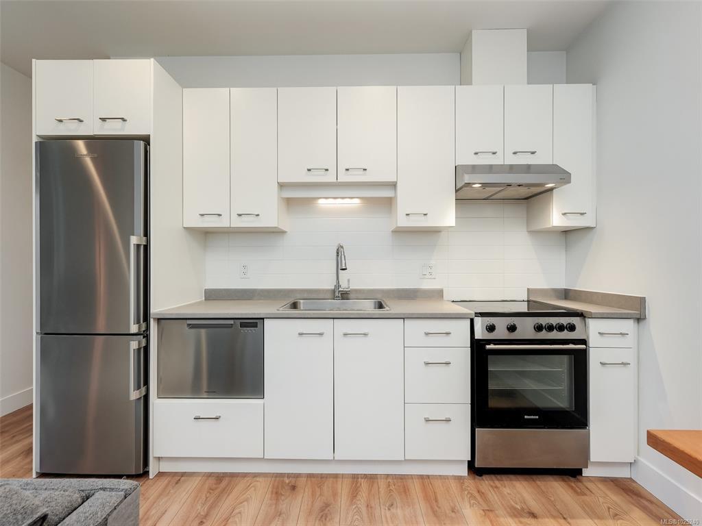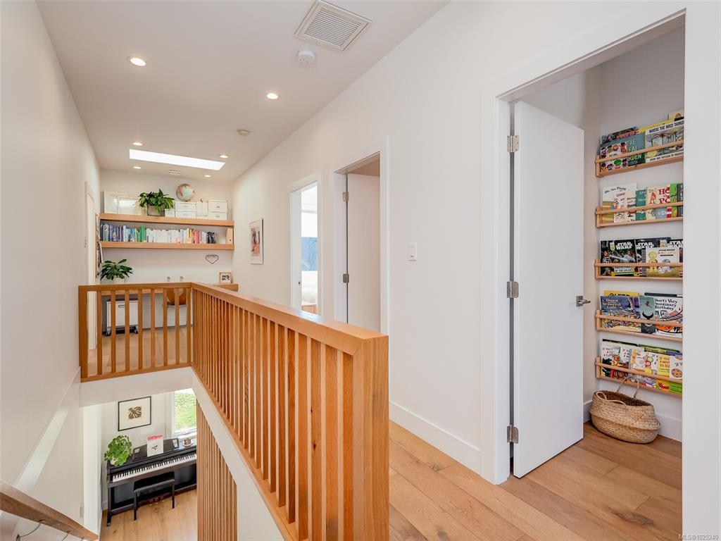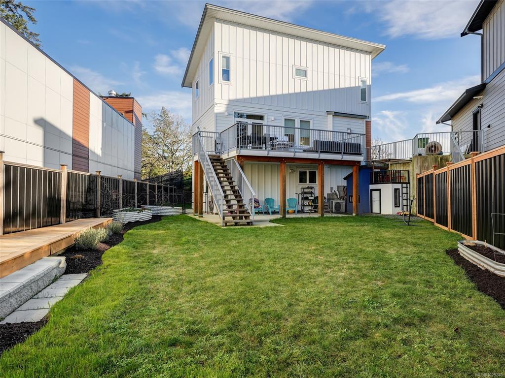 Stunning 2018 custom-built 4 bd 4 bath home w/legal one-bed suite! Perched at the end of a quiet cul-de-sac this bright, south-facing 3 level home offers 9-foot ceilings, expansive windows w/ views, and a very well laid out open-concept floorplan. The spacious kitchen features quartz countertops, gas range, and access to a west facing deck w/ gas outlet for BBQ's and firepits. A newly fully fenced backyard hosts lush perennial gardens and a custom playhouse, perfect for children and pets. Upstairs features skylights bringing plenty of light into the hallway and office nook, a large laundry room, 3 bedrooms including large primary w/ walk in closet, and an ensuite w/in-floor heating. The Legal Suite has 9' ceilings, its own laundry room/storage, and its own private outdoor space. Addl features incl. gas heat pump with A/C, double garage, separate storage, On Demand hot water and RV parking. All this in a convenient location mere minutes to the highway, or all downtown Langford offers!