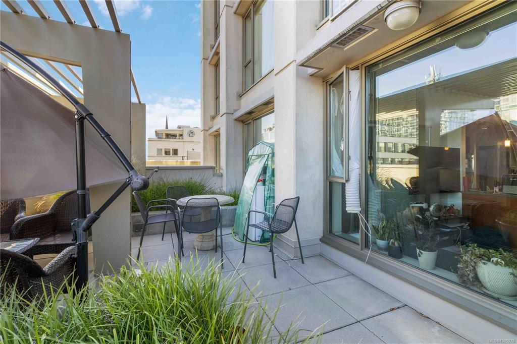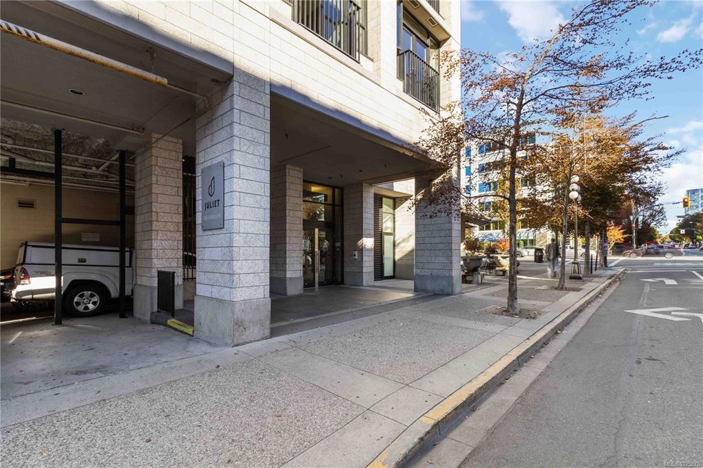 VACANT AND READY FOR IMMEDIATE POSSESSION!!! Live in style at The Juliet. This bright, open 1-bedroom condo offers the perfect blend of urban lifestyle and smart investment. The modern kitchen features stainless steel appliances and granite countertops, while the spacious living area opens to a huge patio—your own private downtown retreat. Enjoy the convenience of in-suite laundry, secure parking, and a storage locker. Take in sweeping city views from the rooftop patio with BBQs and lounge space. Pet-friendly with no rental restrictions, and just steps from restaurants, shops, and Victoria’s vibrant core, this is downtown living done right!