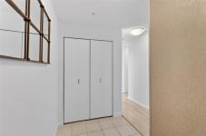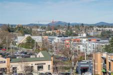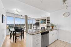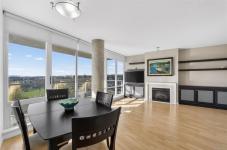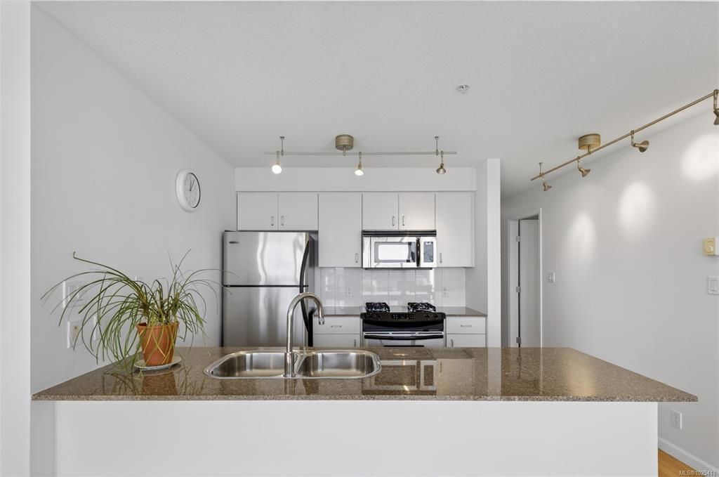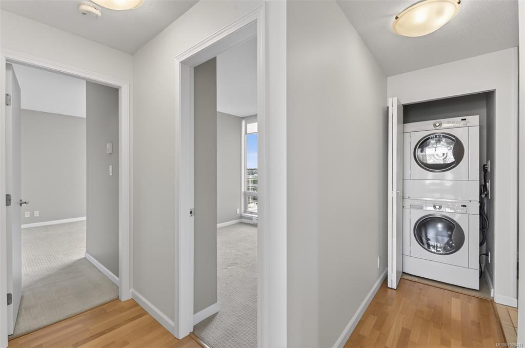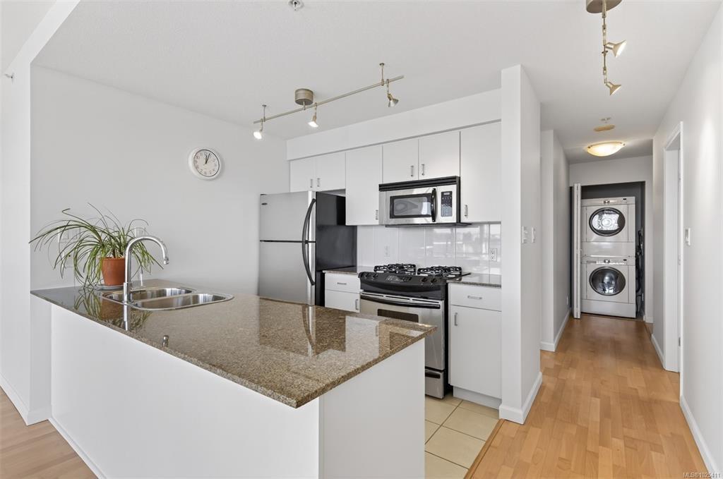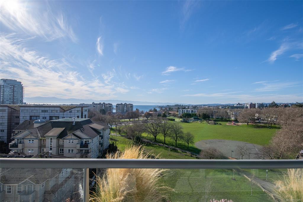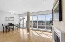 Location truly sets this home apart. This bright and sun-filled two-bedroom corner condo is ideally situated with every amenity at your doorstep making it easy to leave the car at home. With only one shared wall, the home offers exceptional privacy and quiet living. Floor-to-ceiling windows flood the space with natural light and open onto a generous deck with sweeping views over the park, stretching toward the harbour and Olympic Mountains. The well-designed layout features two spacious bedrooms, including a primary suite with a walk-in closet and full ensuite. Beyond the home itself, the building delivers outstanding value with its park-like setting, convenient access to transit and bike routes for an easy commute downtown, EV-ready parking options, a well-equipped fitness centre and a stylish residents’ lounge complete with a pool table is perfect for entertaining. A rare opportunity to enjoy privacy, views, and an unbeatable location. Book your showing today