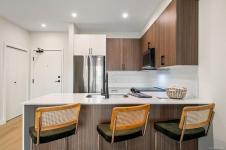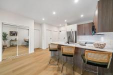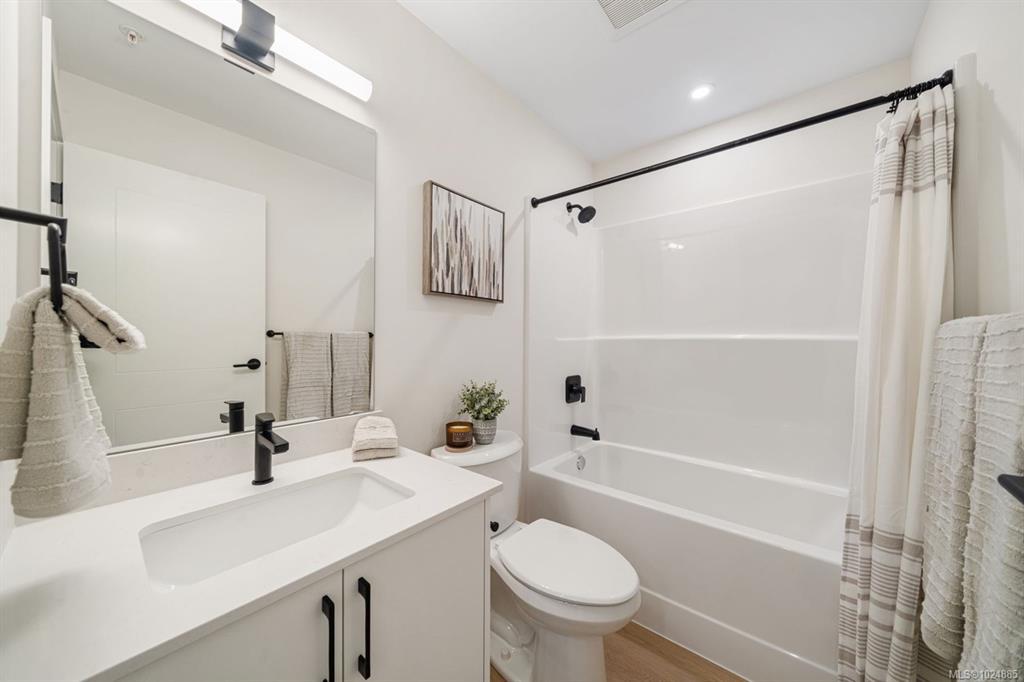 Viking Properties has a stellar reputation for high quality and for its soundproof construction. Located on the 4th Floor – brand new, bright unit featuring 1 bedroom, 1 den, 1 bathroom and ample closet space. Heat pump for cost-efficient heating and cooling. Den is well suited for a home office, reading area, exercise room, pantry or storage. West-facing balcony provides additional living space. Stainless kitchen appliances including dishwasher, fridge with ice maker, stove, microwave and in-suite laundry. Décor includes 9-foot ceilings, wide plank luxury vinyl flooring, quartz countertops and soft-close contemporary cabinetry. Matte black finishes, faucets and fixtures. Underground parking for one vehicle and covered guest parking at side of building. Comes with storage unit and bike storage. Conveniently located being minutes away from the highway, Costco and downtown Langford.