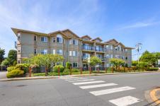 Welcome to The Hamptons, a well-maintained 55+ condo building in the heart of Duncan. This bright and airy ground-level corner unit with grassy gated patio for pets offers 1,062 sqft of comfortable, accessible living. The open-concept layout features a bright kitchen, spacious living area with a gas fireplace and dining area. The primary bedroom includes a full ensuite and generous sized walk-in closet, while a second bedroom and full guest bath provide flexibility for guests or hobbies. A dedicated parking stall is included, along with standard appliances, in-suite laundry & a central vac. The building is secure, quiet, and well managed. Small pet friendly with restrictions and ideally located just a short, level walk to shopping, restaurants, the Cowichan River, public transit, and all the amenities Duncan has to offer, making daily errands easy and convenient. This is a wonderful opportunity to enjoy low-maintenance living in a friendly, safe and established community.