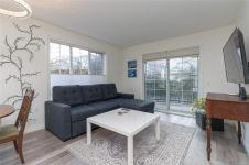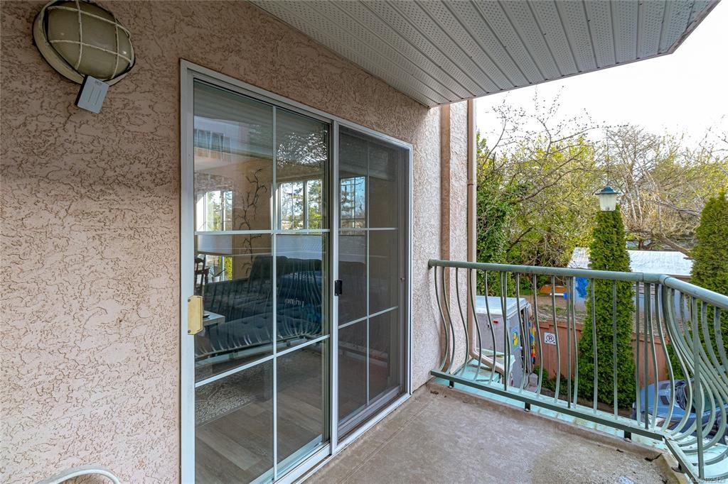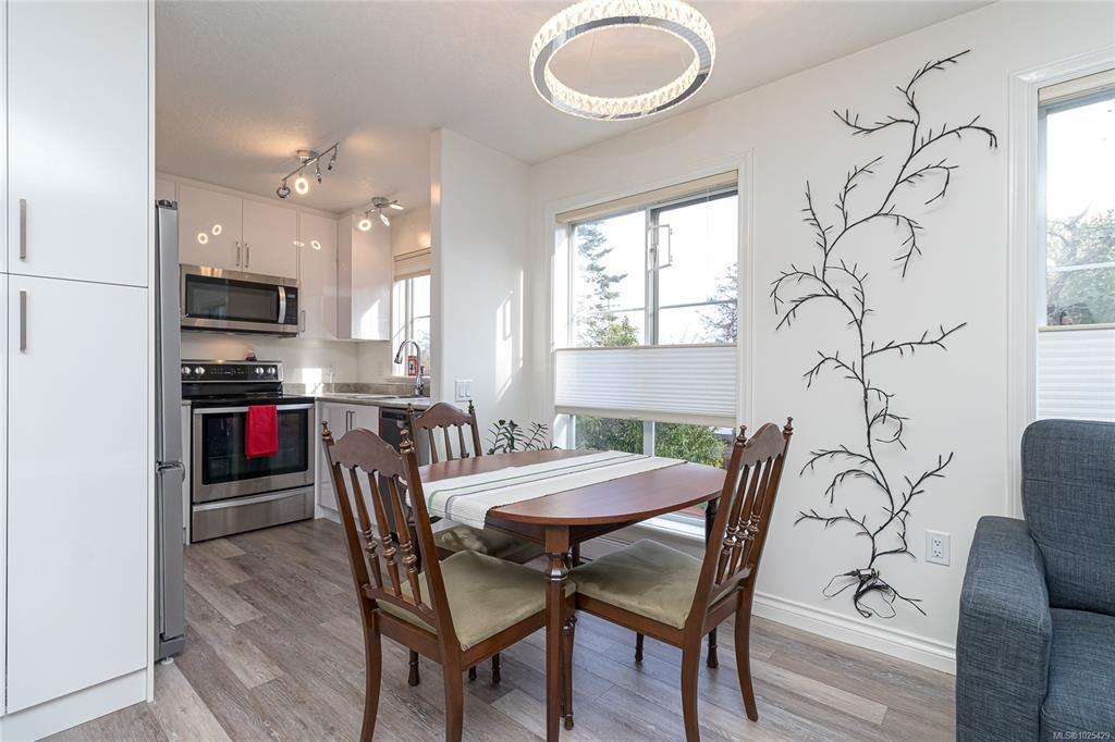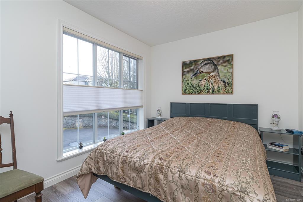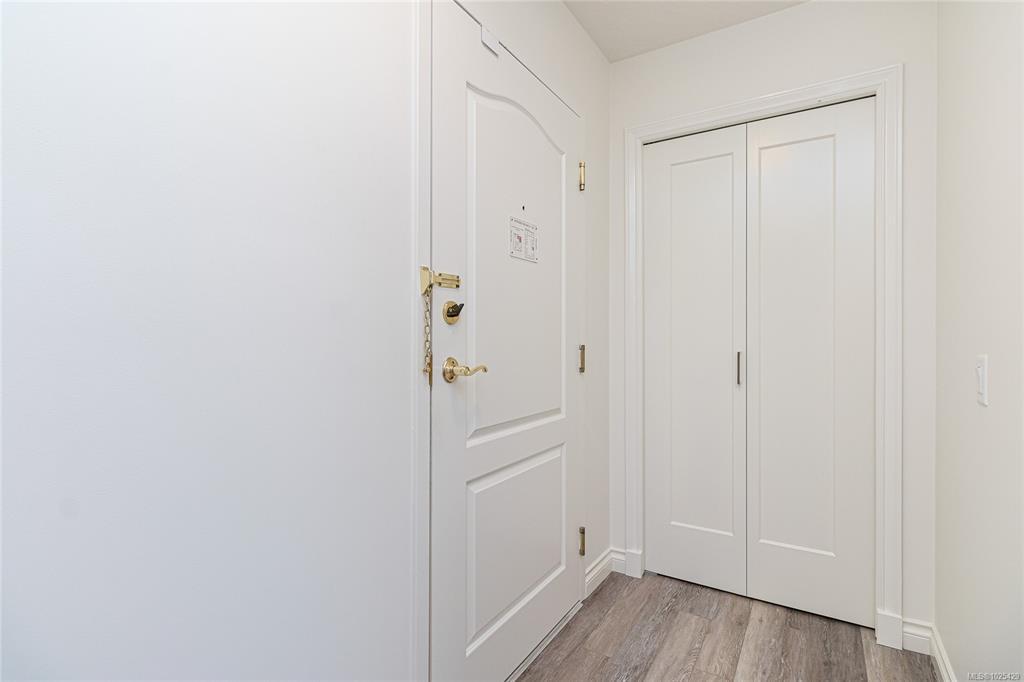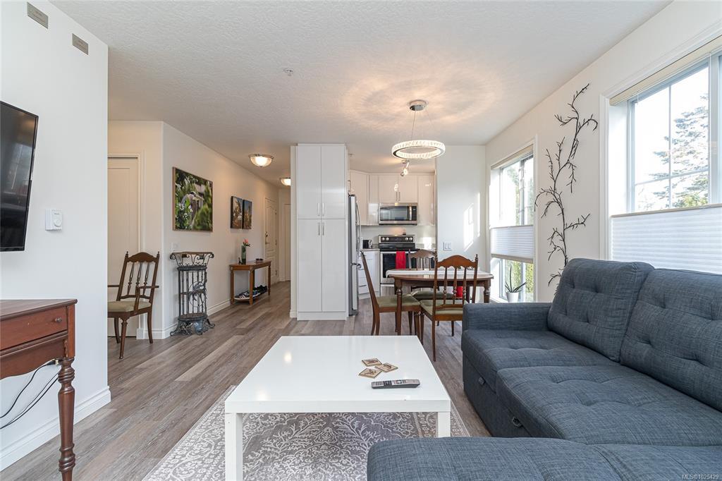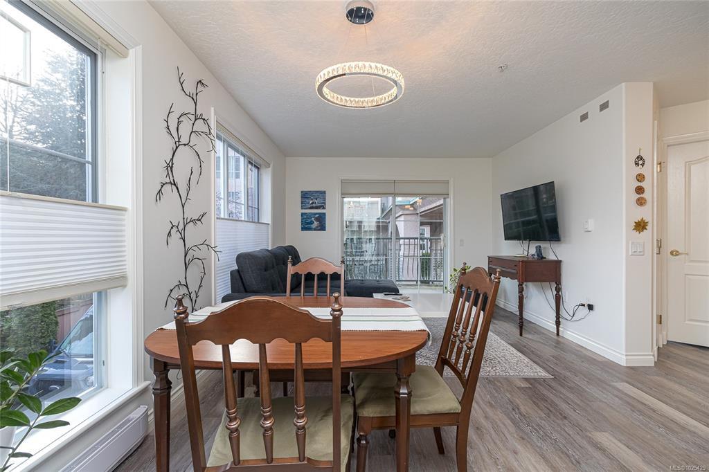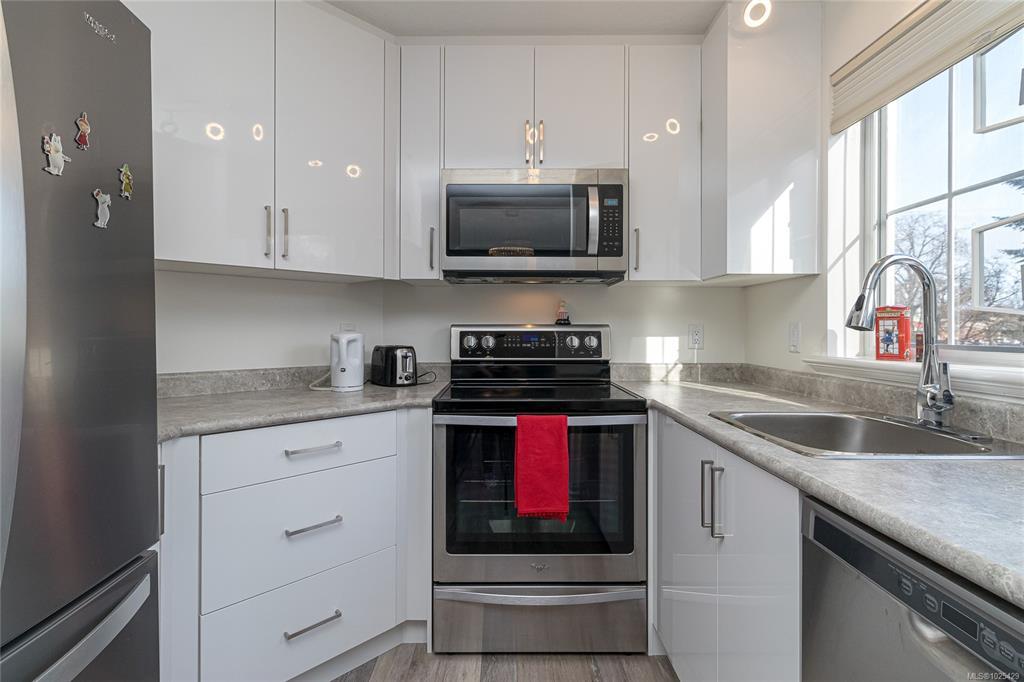 Bright 2nd Floor unit 55+ Bldg. Very nicely updated throughout incl. Vinyl plank flooring, completely renovated master bed. & cheater ensuite including, closet system with extra drawers. The bathroom has been updated with beautiful modern sink, tile & tub. Bright kitchen. Over sink window & redesigned pantry shelving unit. The kitchen cabinets have all been replaced with modern finishes with lots of storage. All windows floor to ceiling lighten the whole unit, & have been fitted with a modern blind system + screens. Building located across from shopping and services at Tillicum Centre incl. Save on Foods, Silver City Movie Theatre and much more. The is a corner suite on the backside of the building and is very quiet. No Parking space but wait list available.Over 55 bldg. If you use public transport or enjoy walking/riding this suite is for you. View it Today! All measurements approx. Buyer to confirm all importan info.