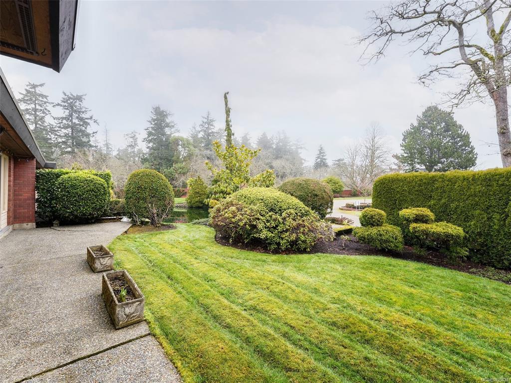 Ideal downsizing option for those looking for executive one level living, in an exclusive & rare, gated community in Oak Bay. A location to be proud to call home, the Uplands Estates is an enclave of 64 homes nestled on the back of the Uplands Golf Course, adjacent to Henderson recreational Centre & across the road from the University of Victoria and trails of Mystic Vale. This mostly originally finished ranch style layout offers luxurious room sizes and has fantastic bones and shell space, for the new owner to reimagine and update the aesthetic. The primary is large with a walk-thru closet and walk-in shower. A sunny south facing exposure for the private patio overlooking opulent mature and manicured landscaping and beautiful and tranquil water features. A double detached garage with sub panel and drywall finished is the icing on top! For those with an active lifestyle, there is plenty to enjoy with this location and the grounds are a beautiful option for an outing closer to home too.