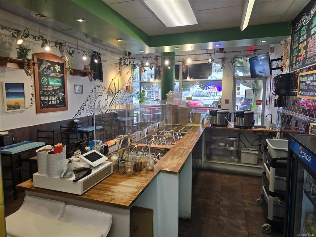 Turnkey restaurant (no commercial hood) in a prime location with excellent street exposure, close to park, residential areas, and popular tourist attractions. The area is experiencing significant new developments, offering even more potential. Interior offers over 800 sqft of space, including 19 seating options. Recently renovated with updated flooring, a modern serving bar, stylish interior décor, and new light fixtures. A fantastic location with reasonable rent! Come make it your DESTINED business! Do not approach staff or business owner regarding the sell of business.*