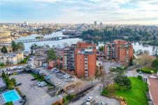 Top Floor Penthouse suite at the popular Treelane Estates. Waterfront Living on the Gorge Waterway! Bright one-bedroom suite with stunning southwest water, city and mountain views. Treelan Estates is comprised of two steel & concrete buildings that are quietly set back from the road on the Gorge Waterway. This suite boasts a spacious living/dining area, galley kitchen, large bedroom, and a storage room. Great views from all windows plus a large view balcony. Laundry is conveniently located on same floor. The building itself is known for its strong amenities, including a rooftop patio and lounge, kayak and bike storage, workshop, guest suite. Located along the scenic Gorge Waterway with walking trails and water access nearby, this central location provides easy access to downtown Victoria, Tillicum Centre, and major transit routes. Affordable entry into a waterfront complex in a desirable, established community.