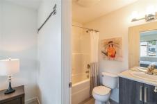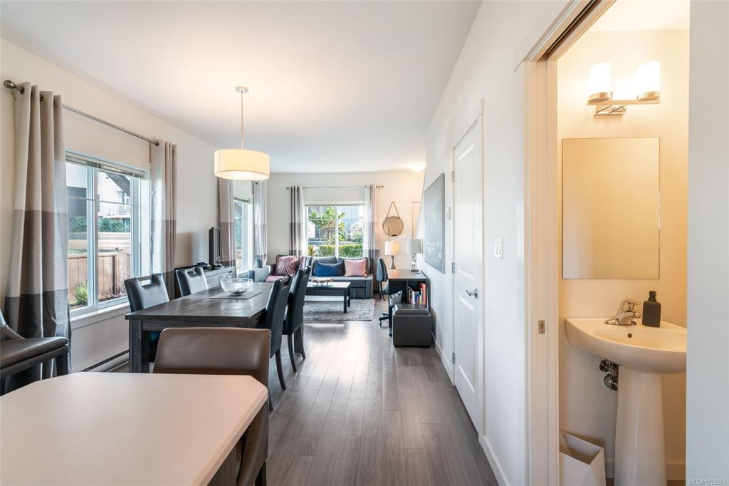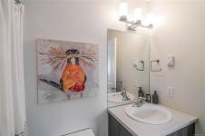 As an end unit, this well-designed two-storey spans approximately 1,000 sq ft & features a bright, open-concept main level filled with tons of natural light with it's southern exposure. The space includes a comfortable living room, dining area, & a contemporary kitchen with a functional island - perfect for both daily living and entertaining - along with a convenient powder room.