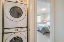 Upstairs are 2 spacious bedrooms, each with a walk-in closet, 4-piece ensuite, & in-suite laundry.