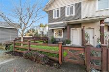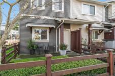 Rare features include a partially enclosed side yard, sunny front patio, rear green space off the kitchen, & 2 dedicated parking stalls. The well-managed strata offers reasonable fees, no age restrictions, & allows pets & rentals.